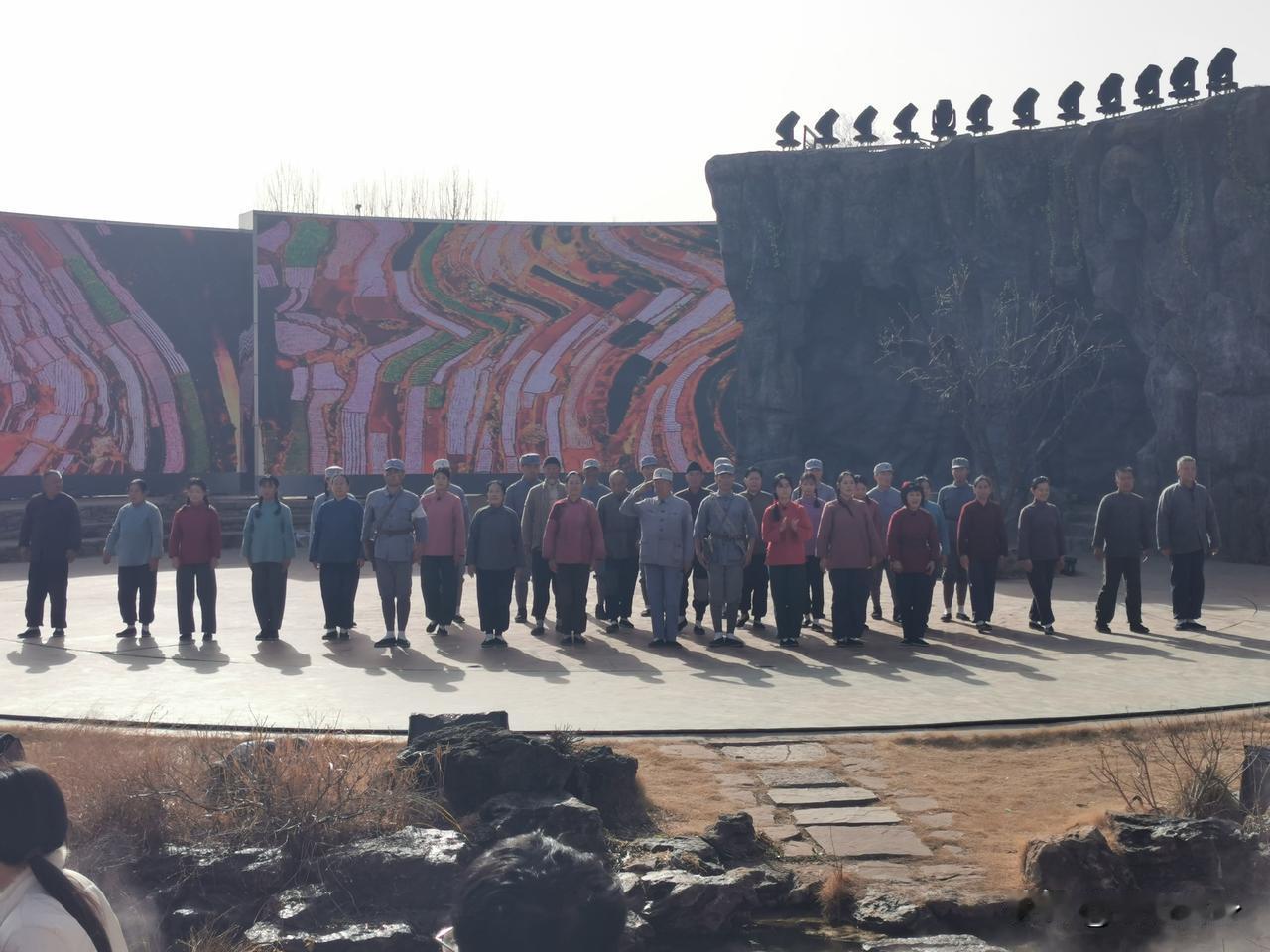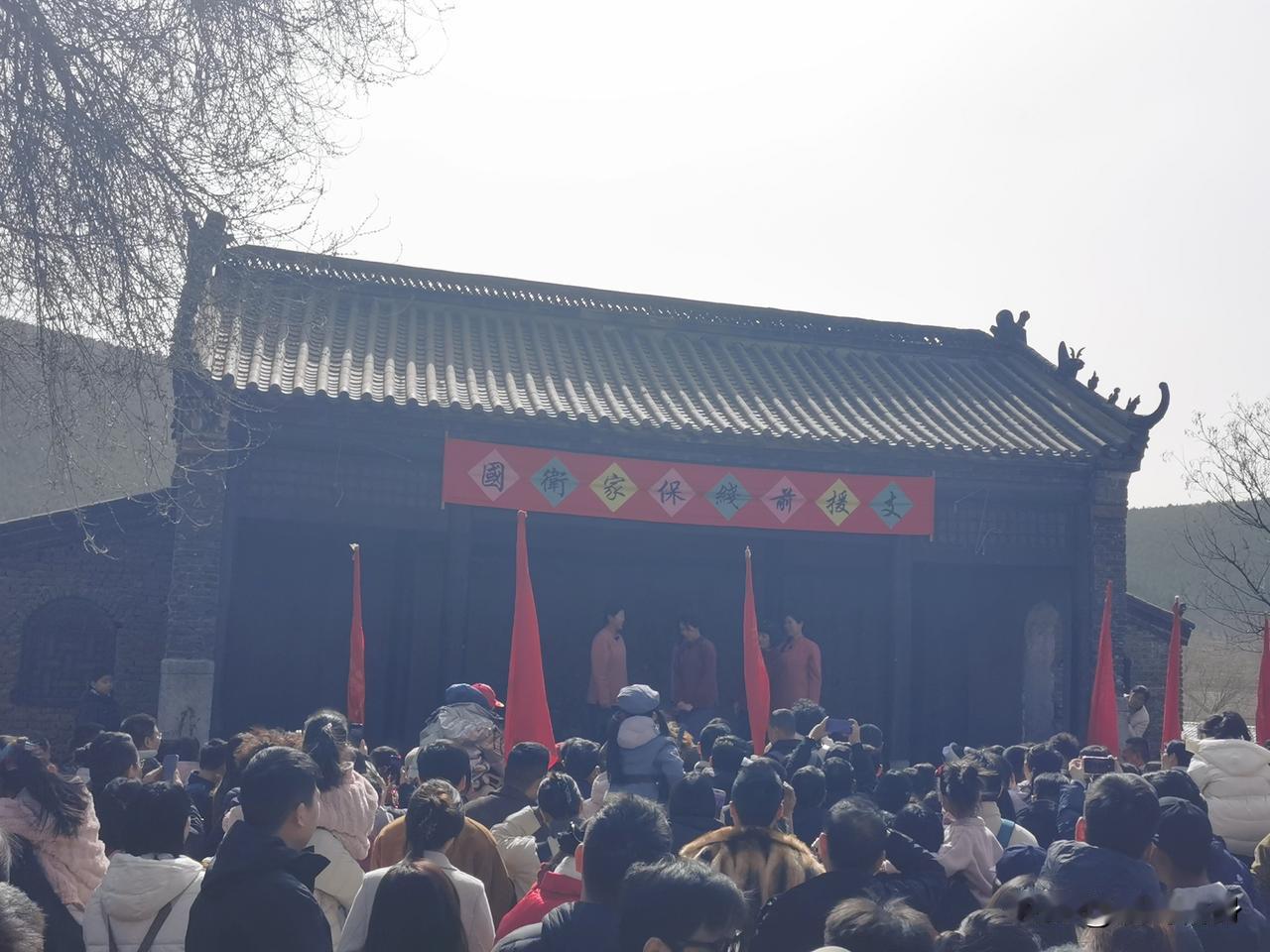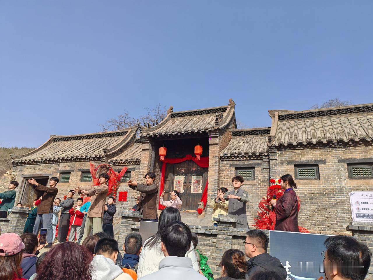 沂蒙山很熟悉的名字,但我确不知道在山东哪里,今天终于来啦! 沂南是临沂市下辖县,是智圣诸葛亮出生地、红嫂精神诞生地,也是“国家全域旅游示范区”。 我们从临沂市区开车约1小时,晚上住沂南县城(诸葛亮商务酒店,很不错哦),就为了第二天去沂蒙山“打鬼子”。 前不久看过的《生万物》电视剧就在沂南县的(沂蒙红色影视基地)拍摄。 真正见到了封大脚的家(和电视剧一模一样), 宁家大院(图四),费家大院(图五),没有电视剧里那么地主(没有布置的缘故吧)。 住沂南县城吃住比较方便,不建议住景区,次日开车约半小时即可到达影视基地。 沂蒙革命根据地中心,有“山东小延安”之称;是《跟着共产党走》诞生地,红嫂家乡旅游区(沂蒙红色影视基地)为《生万物》《沂蒙》《红高粱》等400余部作品取景地 。 现在的红嫂家乡旅游区就是沂蒙红色影视基地,也叫常山庄古村。漫步石板巷看古石屋,可参与沉浸式红色体验项目。 春节初一到十五这里每天上下午各举行一场《重走支前路》演义(图六、图七),来这里的游客就为了参与体验这项活动,每天都人山人海(图八、图九),今天也是。 门票75元,60-69岁半票,70岁以上免票,抖音直播间能抢到65元左右的优惠票, 沂南既有山水诗意,又有历史厚度与红色情怀,吃住行都很便捷。 但是到红嫂家乡旅游区没有班车,只有旅游大巴、自驾车,停车费10元。 这里可以玩一天,上午体验《重走支前路》一直到胜利。14:30看演出《火线桥》(上午要看两场就得很早赶到那里),中午基地有各种小吃卖,也可自带干粮。