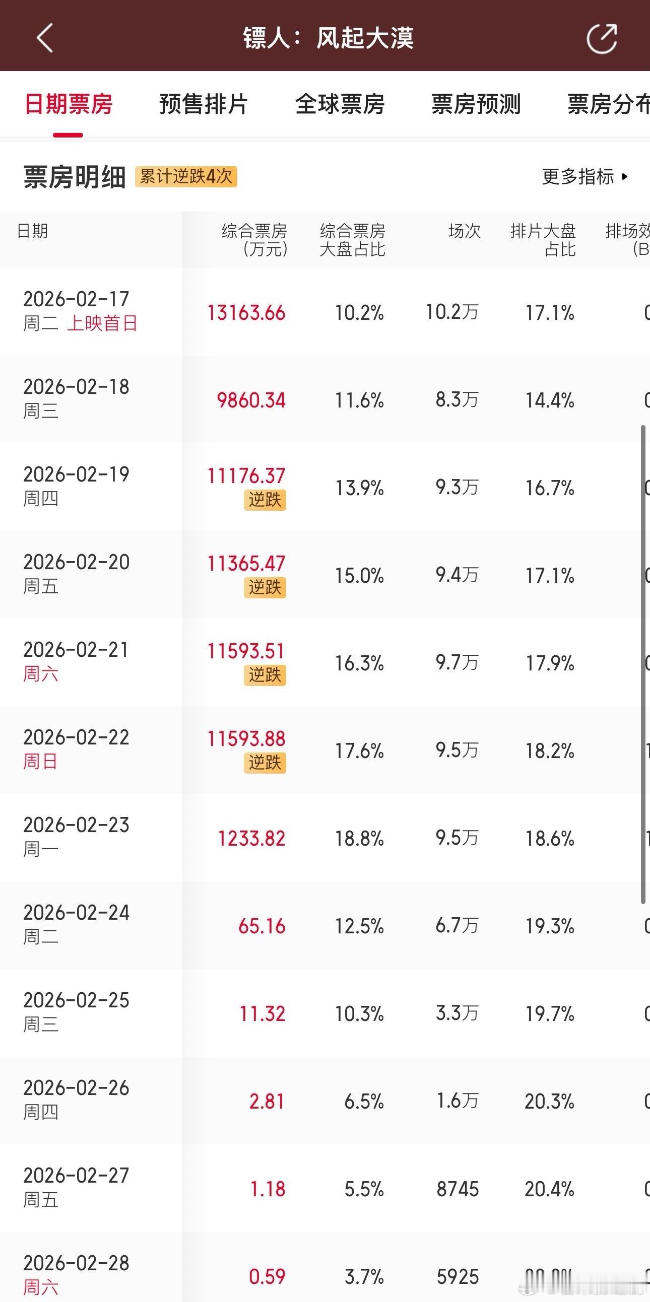 镖人排片一直在升其实从初四开始镖人排座比和票房就已经开始正挂了,我们大蠕排片也