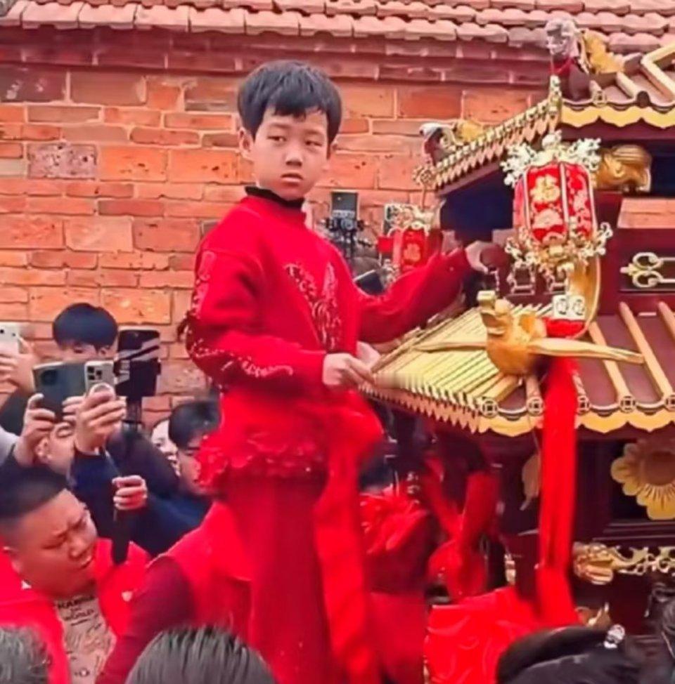 网上有人以为红衣服女孩也是今年才选的妈祖。其实真不是。她很小的时候就已经