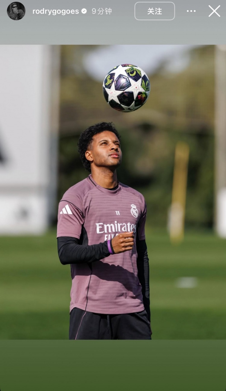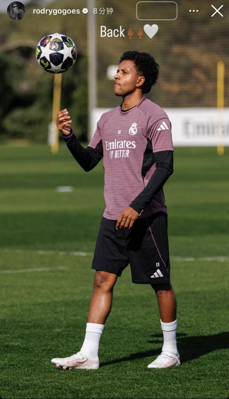 接近复出,罗德里戈社媒晒队内训练照:重返绿茵场