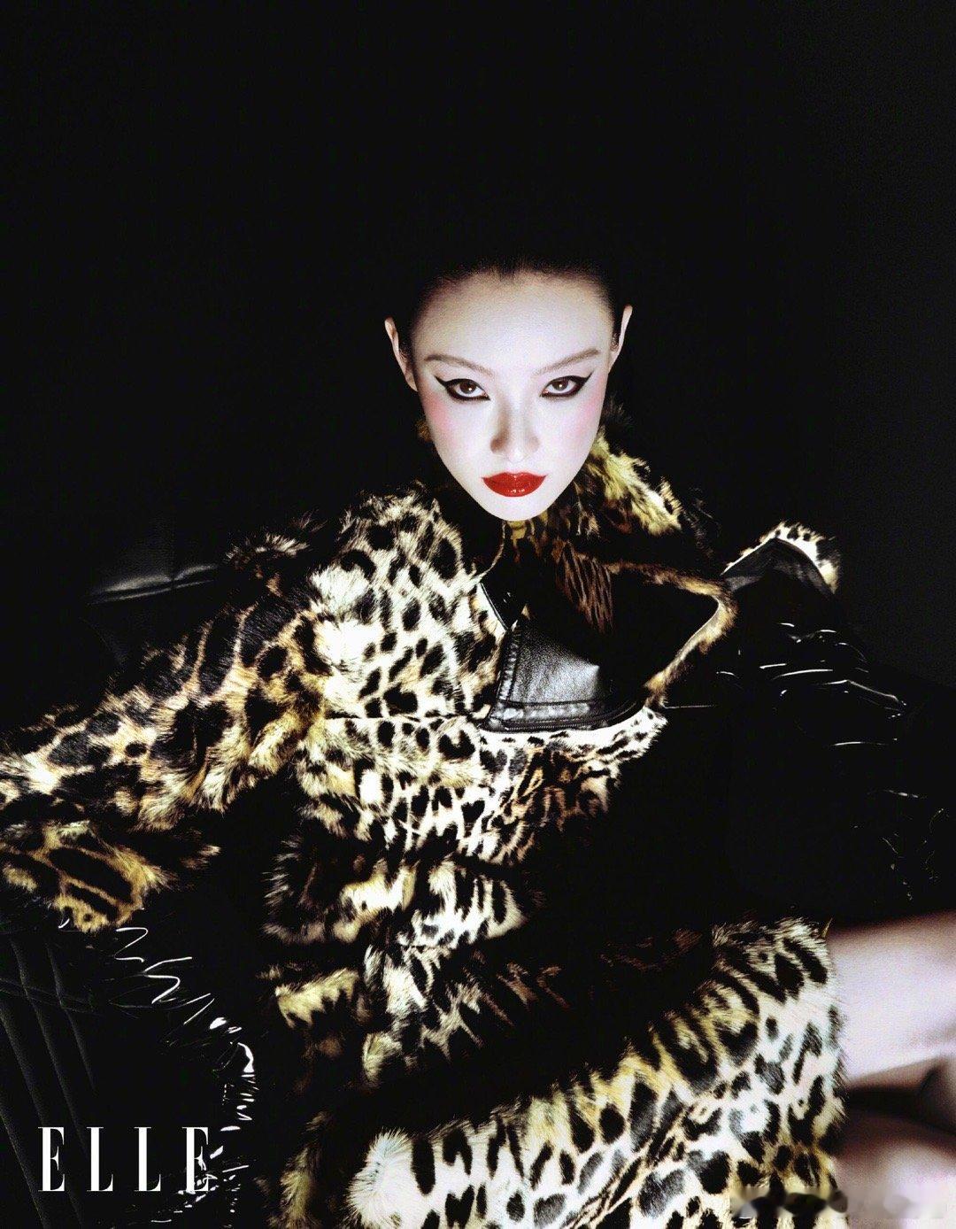 倪妮 ELLE 3月开季刊封面,烟熏红唇搭配Gucci 26早秋豹纹装,化身冷