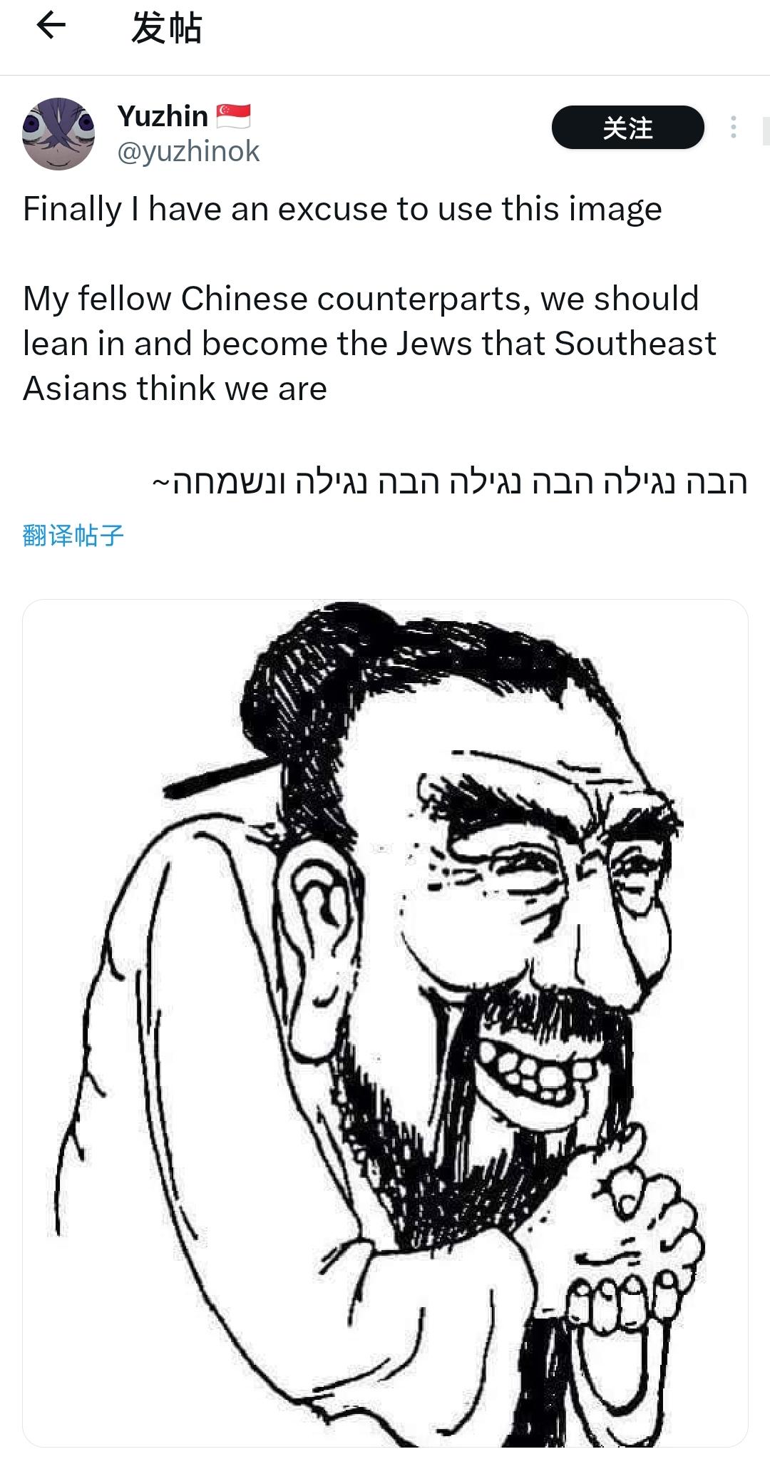 华人是远东犹太人吗? 有新加坡少数族裔把华族比作 “远东犹太人”,满是不满与偏见。 结果新加坡华人根本不生气,反而玩梗自嘲: “你们说我们是,那我们就是咯。” 还配了一句希伯来语 “Hava Nagila”—— 大家嗨起来。 我也说两句: 我非常讨厌外人把我们称作 “远东犹太人”。 因为犹太人和中国人根本没有可比性。 我们流传下来的,不只是优美的文字、灿烂的文化、广袤的领土,更有统一、团结、生生不息的国家与民族。 一个至今仍在漂泊的民族,和我们根本不是一个量级。 但不得不说,这位新加坡华人的回应,真的极聪明。 不辩解、不愤怒、不被带节奏, 用一句玩笑,就把恶意消解于无形——这就是“大象无形,大音希声。” Source: X
