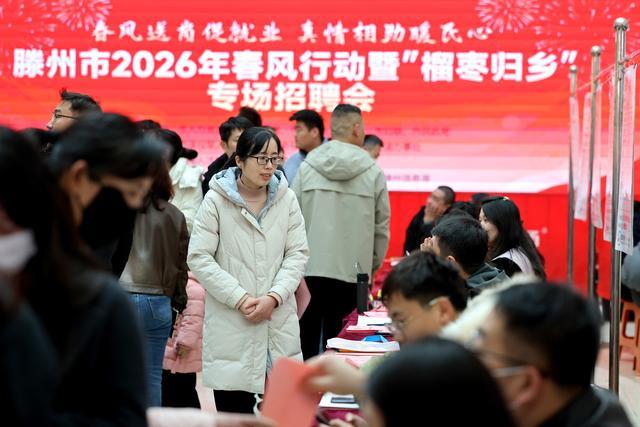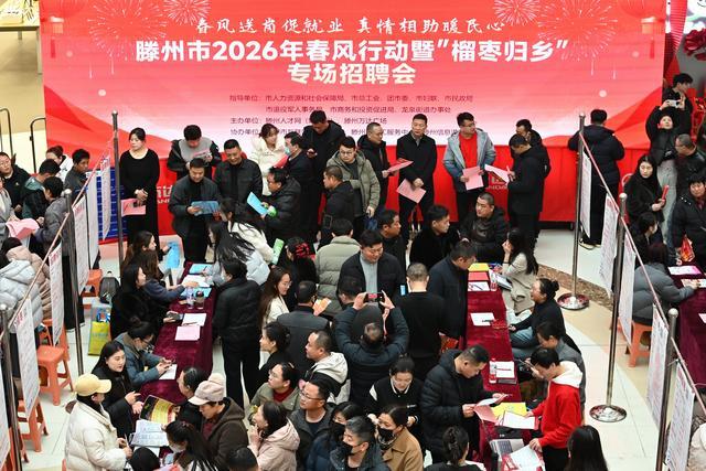 2月22日,山东省滕州市举办2026年春风行动暨“榴枣归乡”专场招聘会,吸引众多求职者前来应聘。