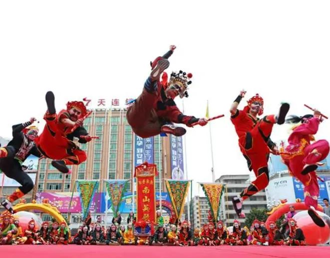 方圆天地,《莺歌舞,你知多少》 潮汕莺歌舞,其渊源可追溯到明朝中叶(公元1566年),距今已有460年历史。莺歌舞是以宋朝时,水浒梁山以劈砺火秦明,黑旋风李達等107名英雄好汉,面谱化粧,潜入京都,围攻大名府,劫法场救玉麒麟卢俊义的事件为背景而创作的。 莺歌舞融戏剧,舞蹈,以及南拳武术于一体。队员精致的戏剧面谱,手执开山夺命棒敲击,在铿锵的锣鼓声中,踏着鼓点,时而跨步下蹲,时而飞跃腾跳,呐喊声,怒吼声震撼心灵。喊出路见不平,拔刀相助的豪气。舞出杀气腾腾,勇往直前的抗敌灭倭英雄气概,群英会萃,豪杰奋起,场面热烈,使人精神亢奋,心血澎湃,是潮汕人民勇敢,顽强,团结的体现。 近几年来,潮汕各县市,乡镇,都纷纷组建了许多莺歌队。莺歌舞巳成为乡村文化传承的载体,多见于庆典,庙会,遊神等地方民俗群众活动。 如今,莺歌舞已走出国门,(英国,新加坡,泰国等)。今年春节,潮汕莺歌舞吸引了众多国内外游客,争相拥入潮汕,希望现场感受莺歌舞的风采,和催人向上的精神震撼。 潮汕的莺歌舞,注重传承,乡里许多十几岁少年,都积极参与学习训练。今年前时,普宁南山青年莺歌队,受邀到香港演出,轰动香港,五岁小女孩庄恩琪的参演,更获得香港市民的阵阵喝采!今年春晚,小恩琪也跟队员,喜登春晚舞台,把莺歌舞带到中央舞台,用潮汕独特的中华战舞,与全国人民共度新春。