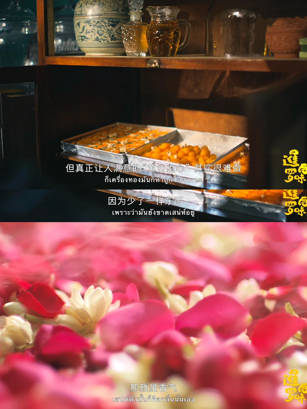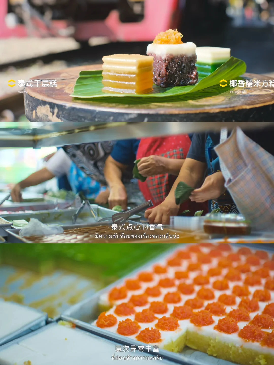 谁懂啊!打开《暹罗百味》第五集,本来只想浅浅下饭,结果被陈晓卿镜头里的泰式甜点馋迷糊了,全程捧着手机疯狂咽口水🤤 看完这集《香气是甜点给生活的奖赏》,可终于是知道泰国甜品“勾胃”的秘诀了——不是单纯的甜,而是层次丰富的“香气”。 最绝的就是那个被全网刷屏的“给甜品上香”!不是噱头,是实打实的传统手艺——盖上盖子,用薰香蜡烛把味道慢慢熏进甜点里,焖到香气完全渗透。掀开盖子的瞬间,仿佛隔着屏幕都能闻到皱皮柠檬🍋的清新,香木粉的醇厚,以及安息香的微甜,层次感直接拉满,这种把“香气”做到极致的巧思真的太戳人了🔥 还有泰国最具传统当地传统特色的甜品代表——金丝、金花、金滴里,这镜头语言真的绝了!特别是慢镜头下,琥珀色的糖浆缓缓流淌,那种焦香与甜润交织的画面,简直是对眼睛和胃的双重暴击!特意去搜了下历史才知道,这个甜品因出现在现象级泰剧《天生一对》中而一度成为网红产品,它们由历史人物泰国甜品女王玛丽亚发明,是她开启了泰国甜品的黄金时代。 更戳我的还有帕尧妈妈的这一part,没有华丽滤镜,只对准帕尧妈妈守了半辈子的小摊,在这个快节奏的时代,为了甜品的味道、口感,她仍在坚持着用手去一点点做甜品,还把一部分甜品送去供奉僧人,看完突然get到了这集标题中的那句“香气是甜点给生活的奖赏”。 已经默默把这集中出现的甜品都记下来了,准备下去再去泰国一一打卡:兰杜安花饼,红宝石椰奶甜品,泰式奶油脆饼…大概这就是甜品存在的意义吧,“品尝多样的甜点,就像是生命的盈余。”答应我,甜品爱好者一定要去看!