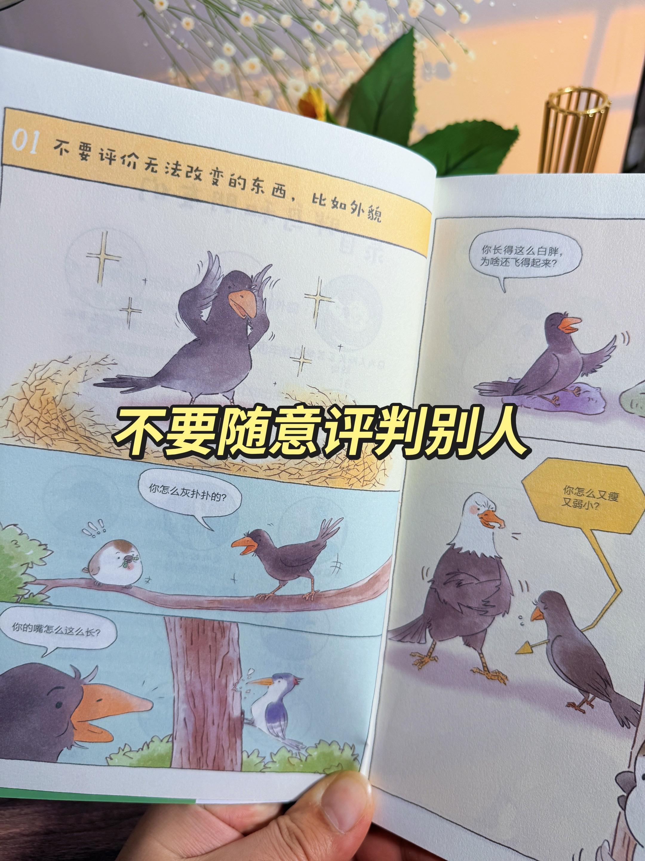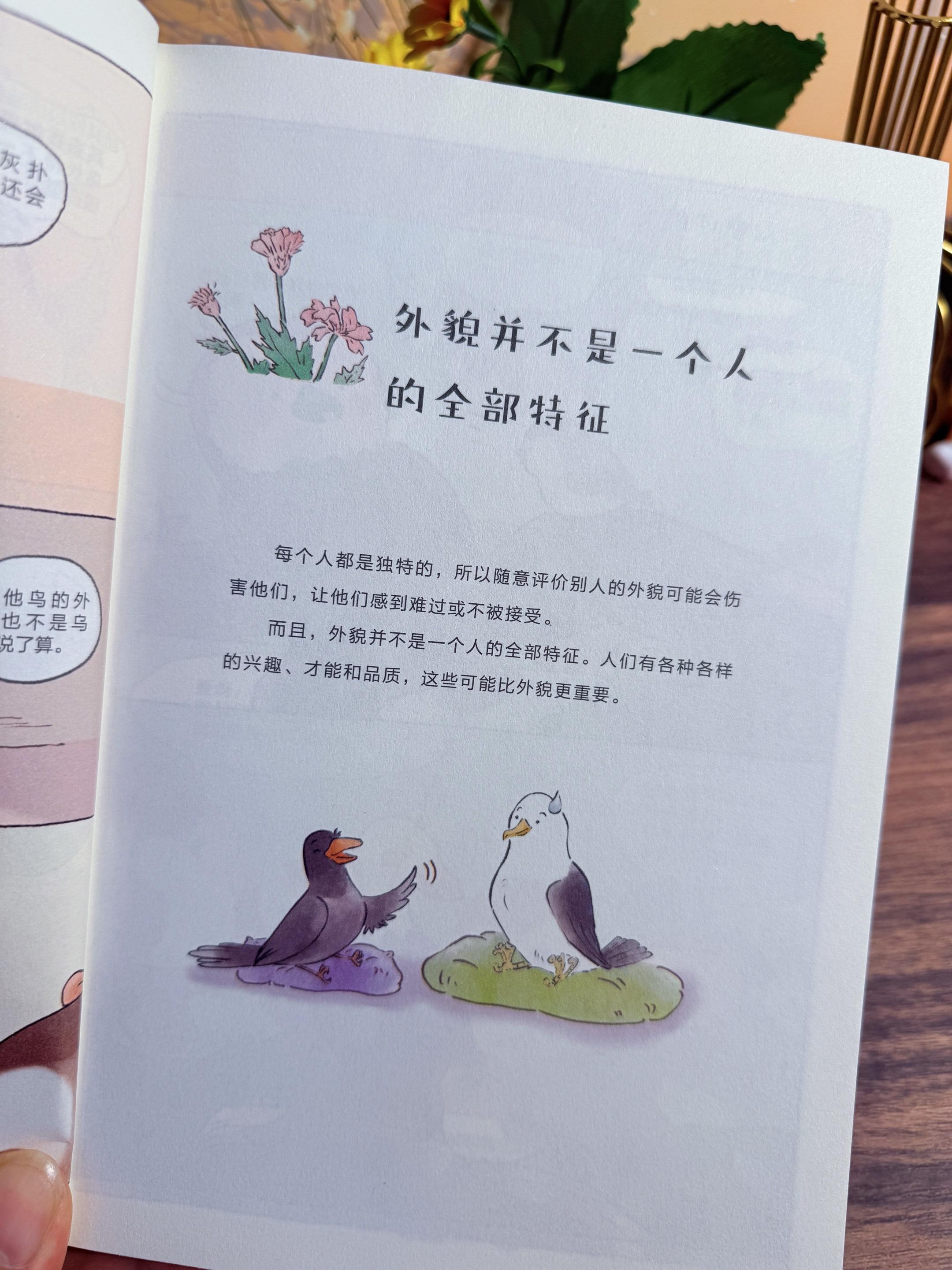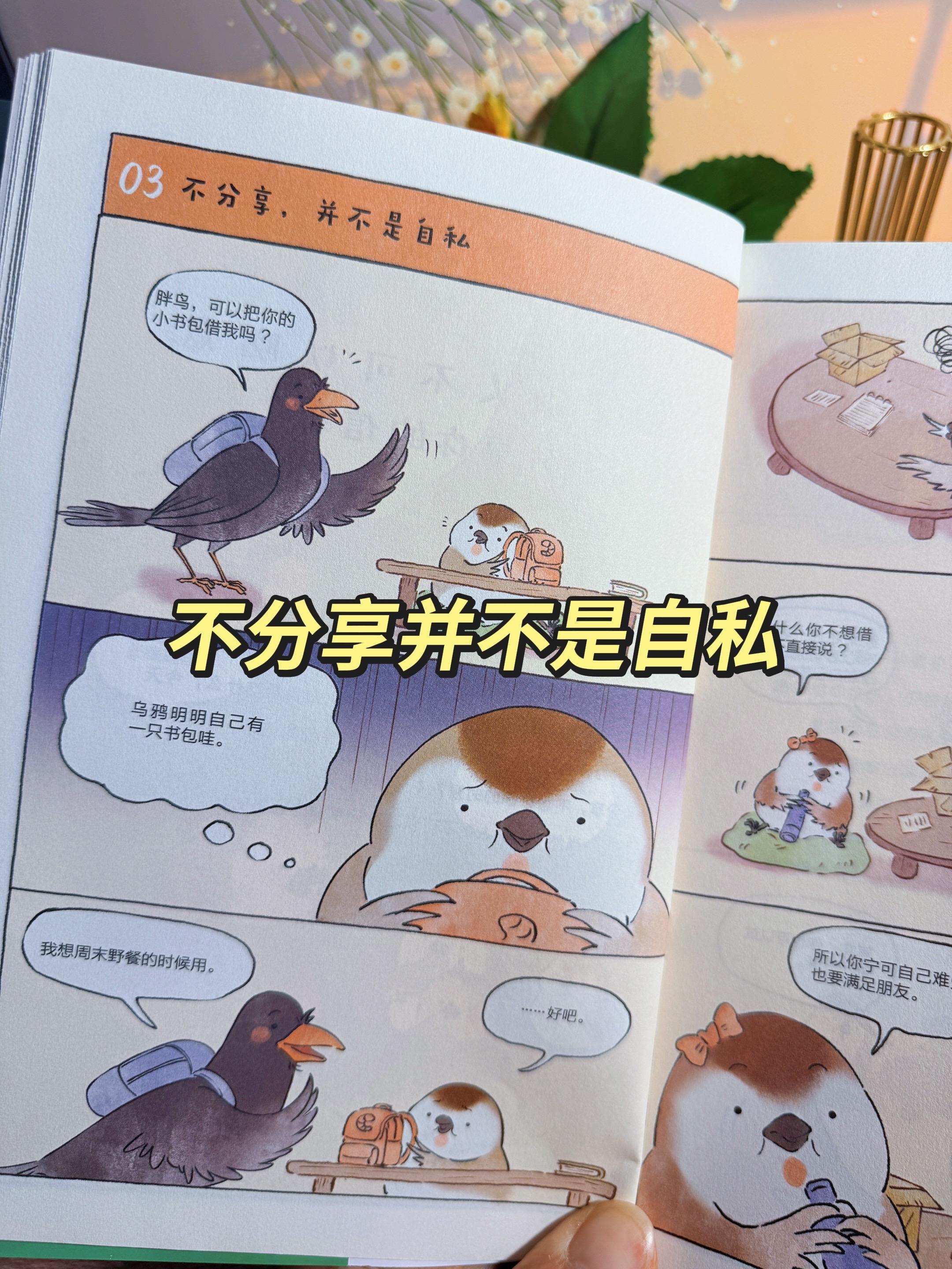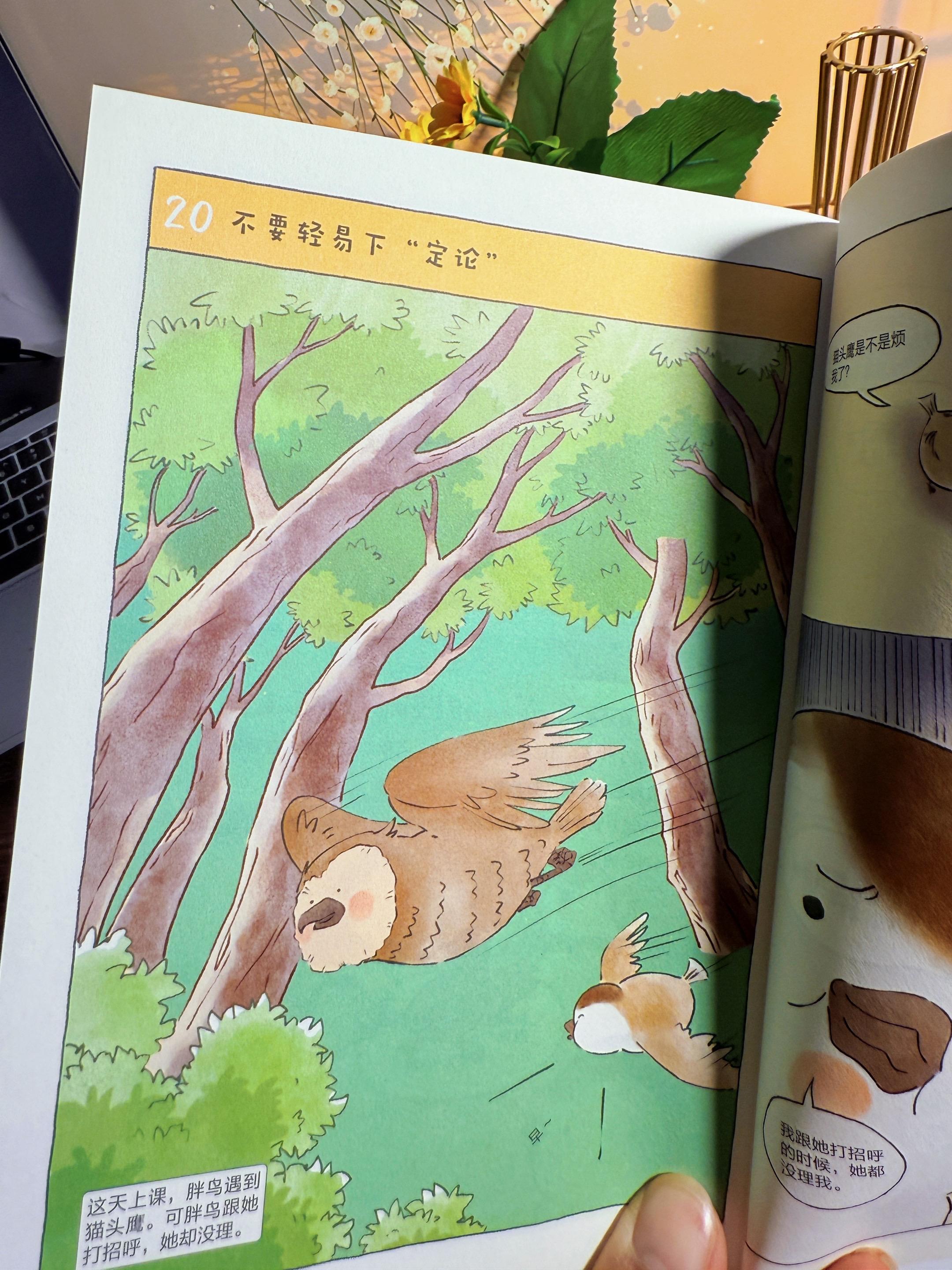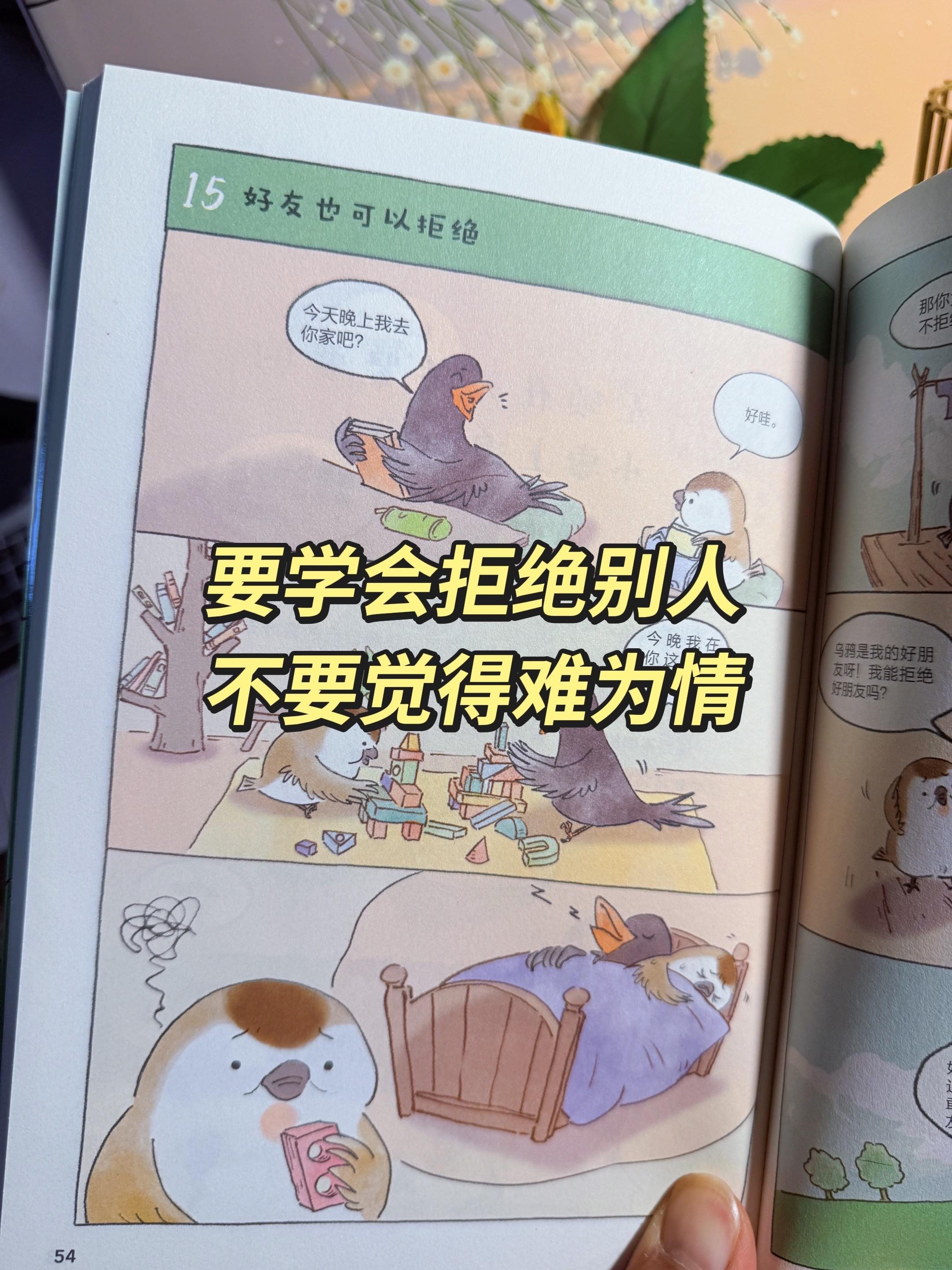 没有边界感的孩子,往往把“友谊”看得比自己的感受更重要,甚至用牺牲自己的感受来换取别人的喜欢,逐渐形成讨好型人格。 《傻鸟学校》全4册|6岁+社交边界启蒙漫画,帮娃轻松搞定社交难题 个贴近生活的小故事,手把手教娃拿捏社交分寸,拒绝不生硬,相处不委屈! 了《练习说“不”》:心爱玩具不愿借?勇敢拒,不做“小气鬼” 《我的事不是别人的事》:不想去兴趣班?坚定自我不盲从 《别人的事不是我的事》:作业没写完被求助?热心有度不耽误 《如何评论》:被评头论足?不玻璃心,保持独立超自信