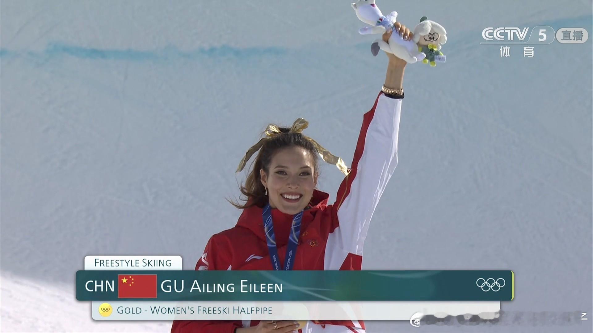 谷爱凌金牌谷爱凌第三滑94.75分 2026年米兰冬奥会自由式滑雪女子U型场地颁奖仪式中国选手谷爱凌和李芳慧包揽冠亚军🥇🥈🎉