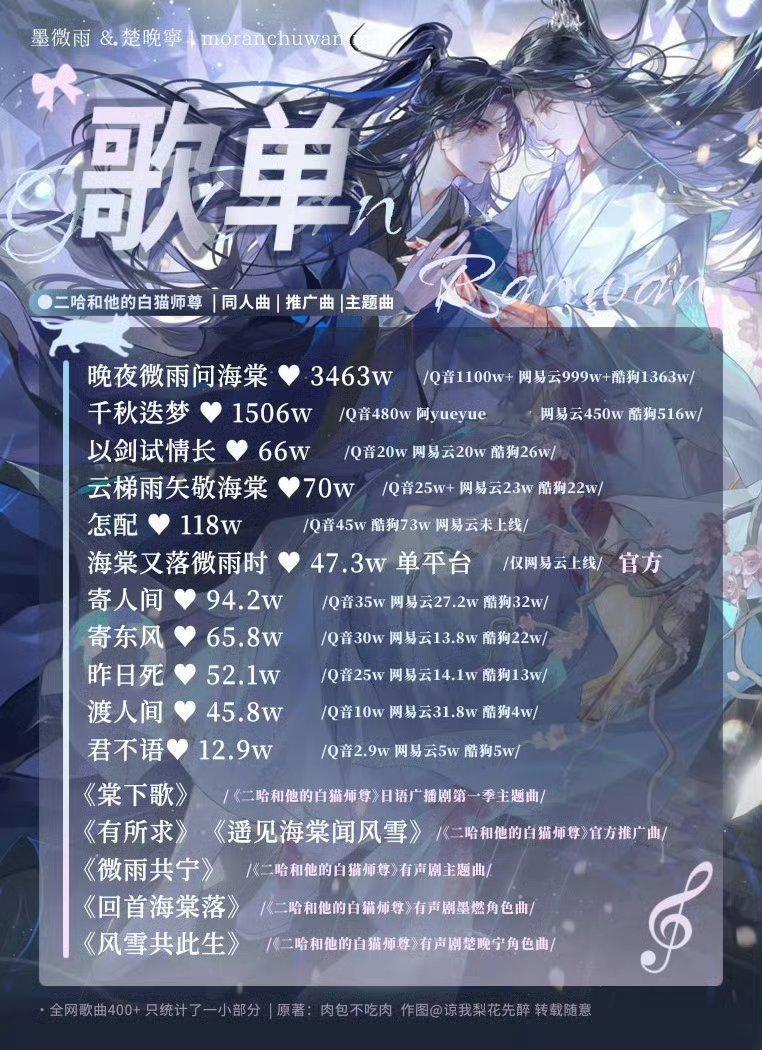 ❤️肉包不吃肉❤️墨燃❤️天赐良缘❤️楚晚宁肉包不吃肉是大神级别的作者,《二哈和他的白猫师尊》著作出版多种语言,在多国畅销,获国际奖项,广播剧破亿,热心公益捐款助力慈善,登作家影响力榜,原耽顶流实至名归!