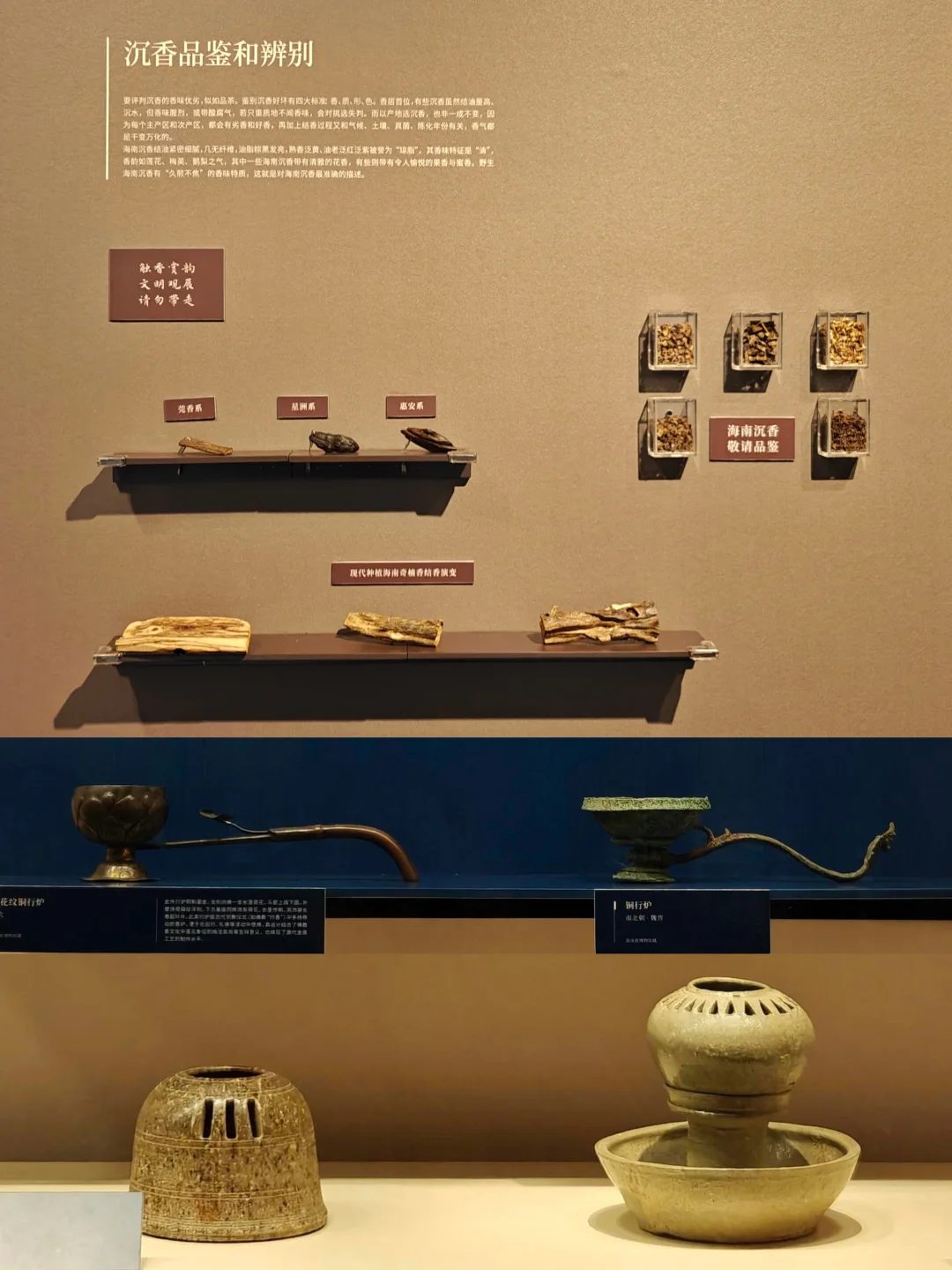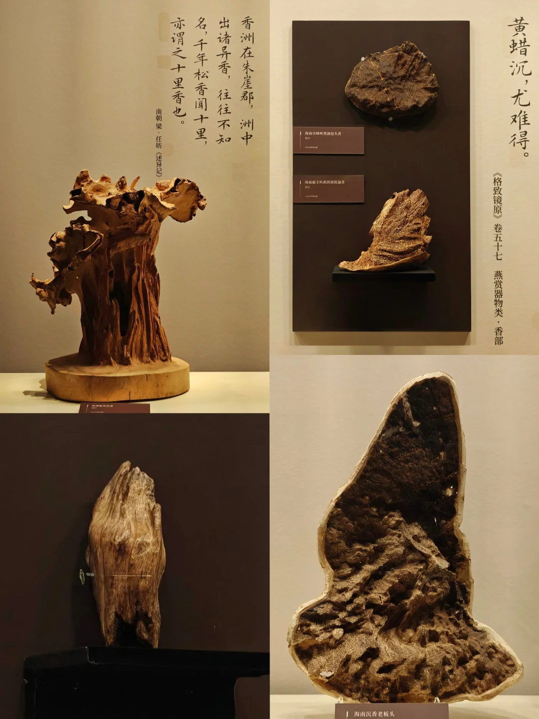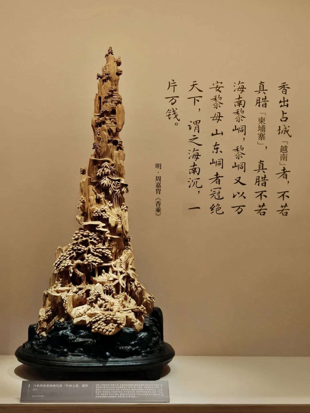 🟤海南所产的沉香,是沉香中的顶级品类,自古被誉为“琼脂之王”“香中魁首”,在药用、香道与收藏领域均享有至高地位。这次特展展出的所有展品(两件书画作品除外)都来自海南省博物馆,馆藏精品沉香➕文物127组,分了两个展厅,规模不算大,但也能对沉香文化有个大致了解了,还是值得一看的。