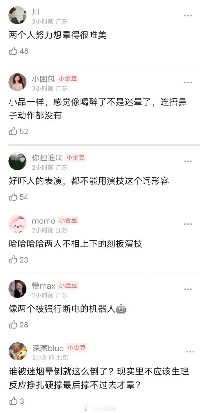 周翊然包上恩中迷药双双晕倒,演成这样居然都给过丝毫不梳理角色的行为逻辑,剧本写演晕倒,那就两眼一闭直接倒下,刚吸到迷烟之后的生理反应呢?挣扎呢?只能看出两个人努力想晕得很唯美。。。可以说是超级优雅的晕倒方式了…这热度看着头痛了,22000都上不去 不是你们埋汰流量要新人吗?大ip也留给年轻人尝试了,怎么又不看剧 颜值明明挺赏心悦目,为啥你们不爱看