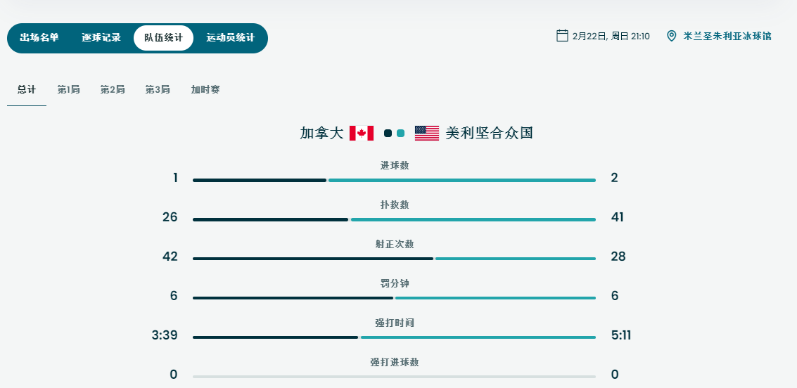 美国射正28次加拿大也扑救了26次,感觉冰球的扑救率就是比较高?
