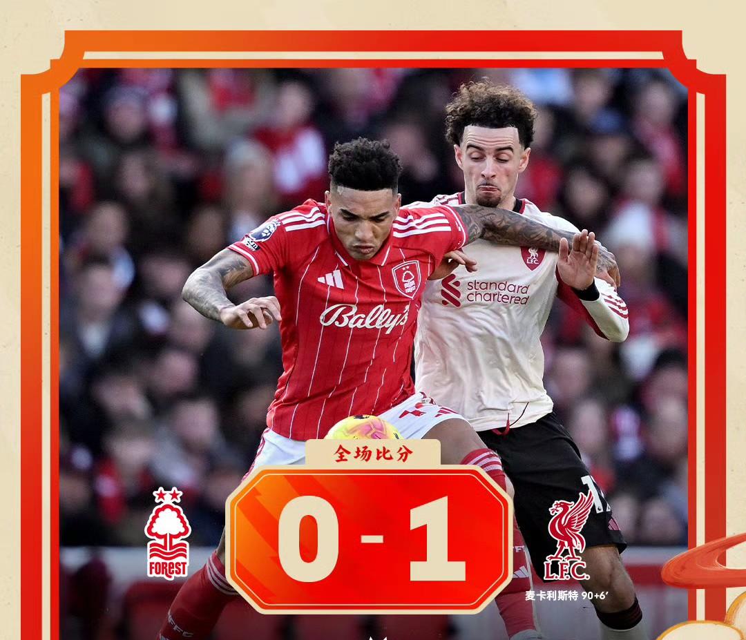 一球值万金!利物浦1-0客场绝杀诺丁汉森林,仍然排名第6但积分追平切尔西。 第90+6分钟,麦卡利斯特补射破门。也许就是因为这场赢球,利物浦才能跻身欧冠。