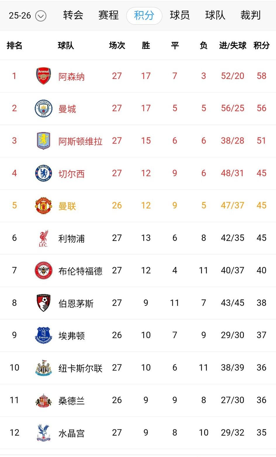 前四预测:曼城、阿森纳、切尔西、曼联锁定!维拉最近状态拉胯——过去8场英超只赢3