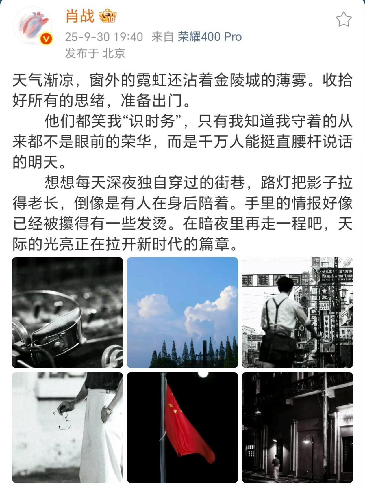 肖战发布杀青小作文《小城良方》杀青,他用刘医生的口吻写杀青小作文:“和一群人不