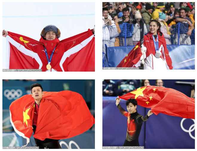 展现了祖国至上、为国争光的爱国情怀。苏翊鸣在获得单板滑雪大跳台铜牌后,以“让国歌在全世界面前奏响”的信念,不惧压力,挑战极限,在坡面障碍技巧项目上为代表团夺得首金。谷爱凌在夺得自由式滑雪坡面障碍技巧银牌后,第一时间寻找国旗。宁忠岩在确认自己夺得我国速度滑冰男子1000米首枚奖牌后,不自觉地看向观众席挥舞国旗的方向,实现了“在奥运会上把中国国旗升起来”的梦想。孙龙在获得短道速滑男子1000米银牌后,身披国旗绕场致意,随后把国旗整整齐齐叠放好。他们用实际行动证明,为国争光是冰雪健儿无上的光荣与责任。