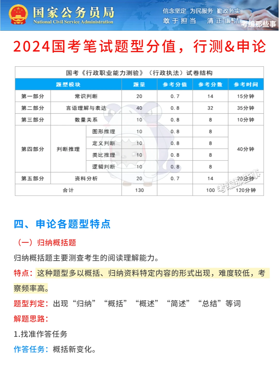 ⭕申论各题型特点