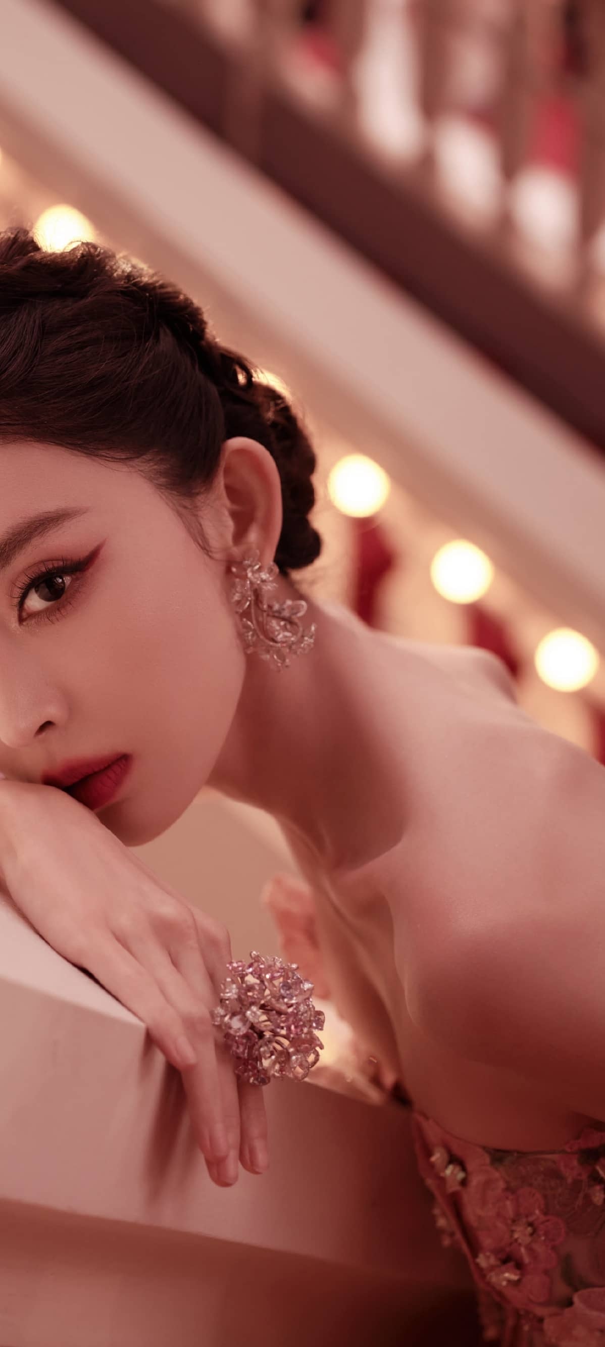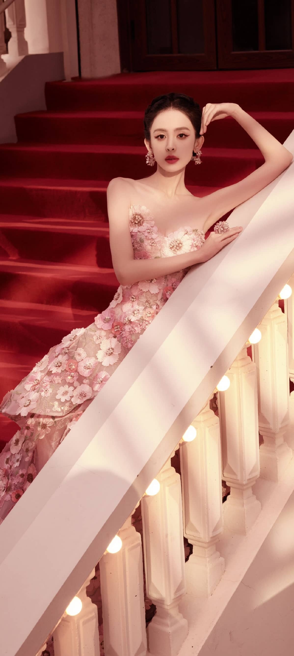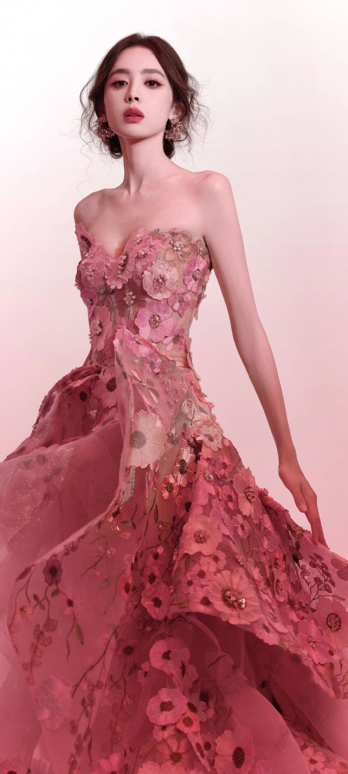 古力娜扎穿搭壁纸,曼妙的玫瑰花美人。娜扎