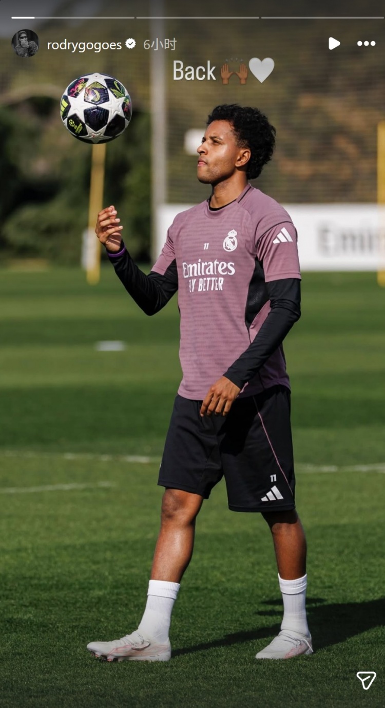 罗德里戈因伤缺席近期多场比赛,他的恢复进展成为媒体关注的问题,这位巴西前锋社媒晒出照片,确认已经恢复训练,朝着复出迈出重要一步,配文:“回归。”