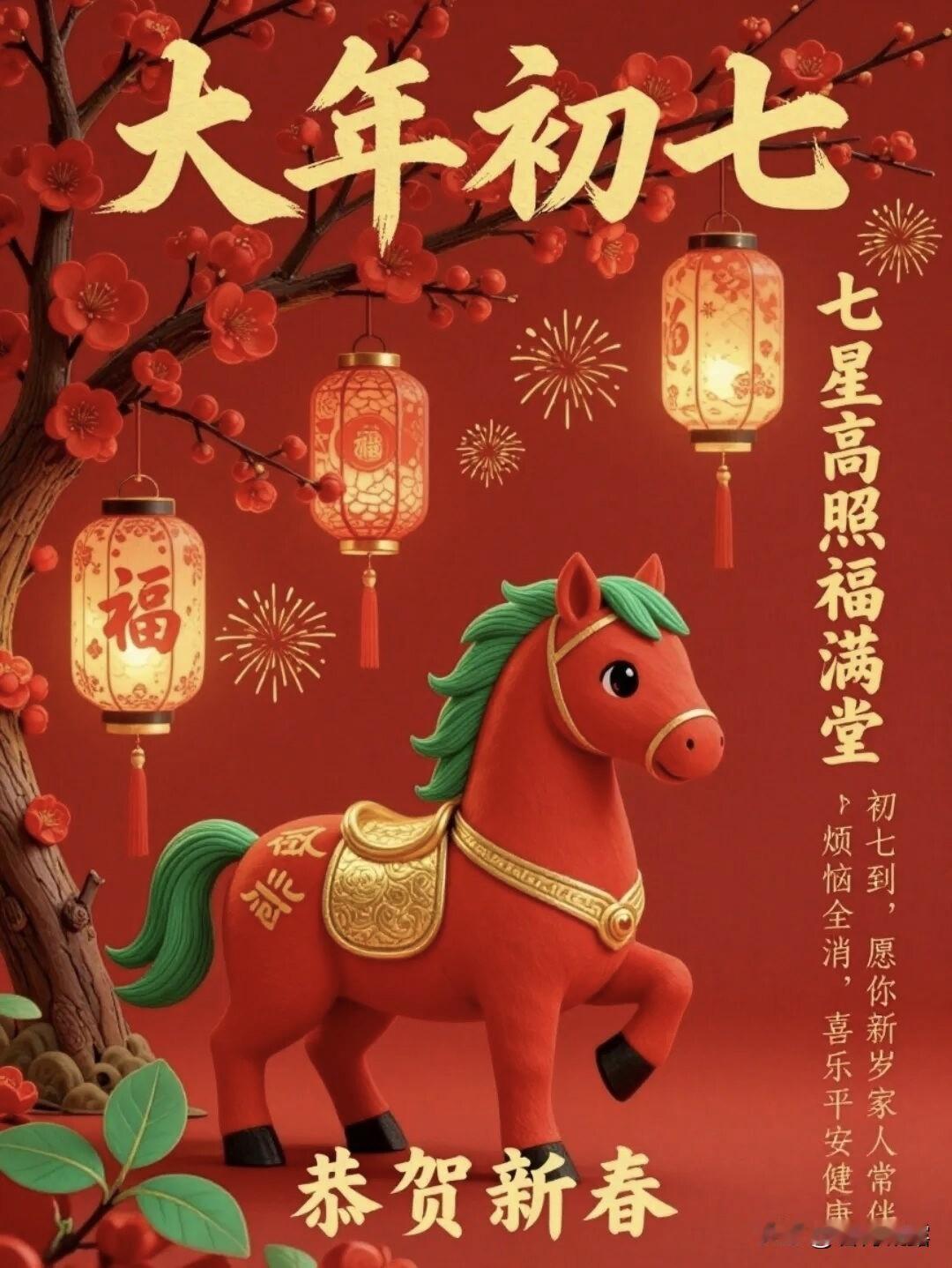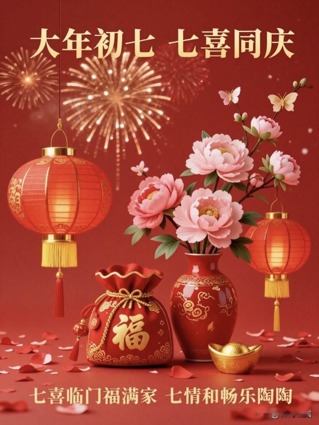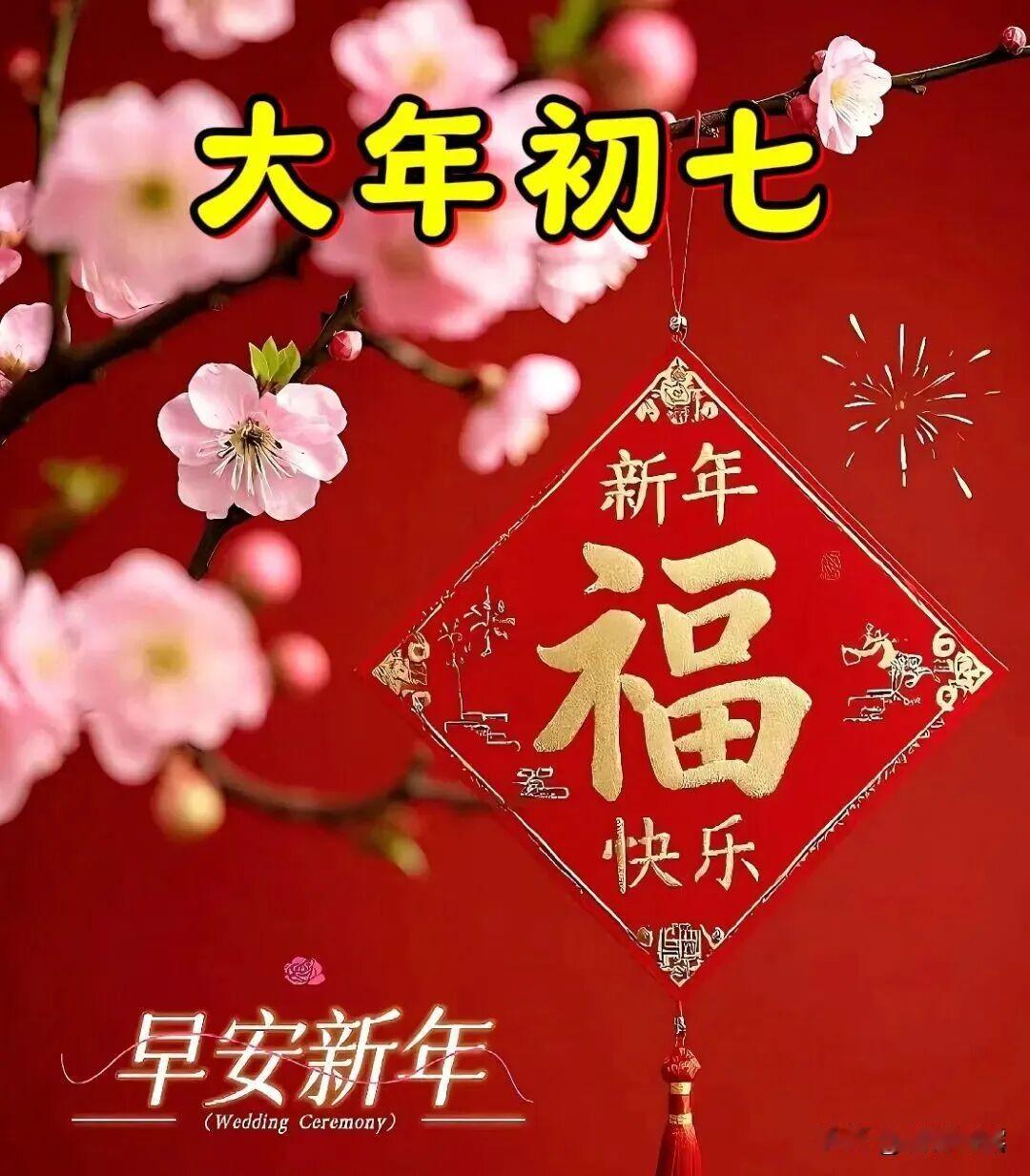 大年初七,七星报喜,福气满满。愿你岁岁安康,家和谐美满,事业兴旺,财源广进,万事皆顺意!