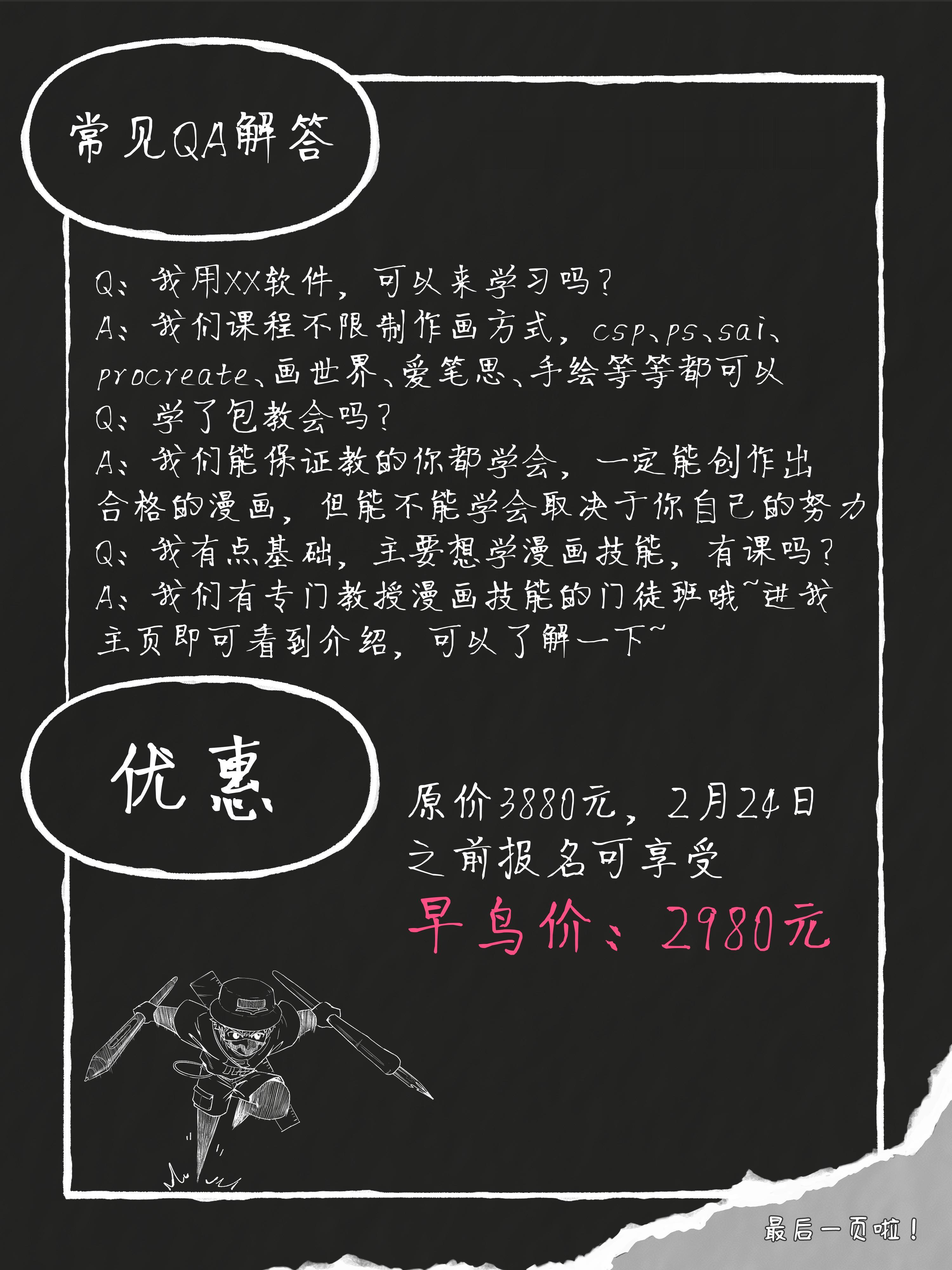 大盛漫画基础班报名马上截止!。早鸟优惠马上结束啦!快来吧!