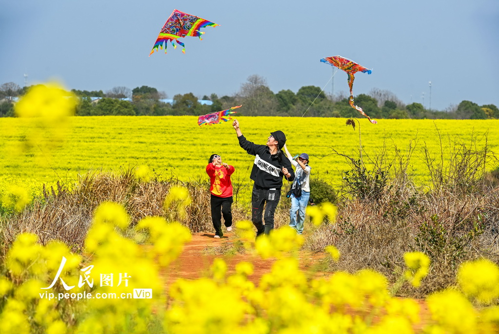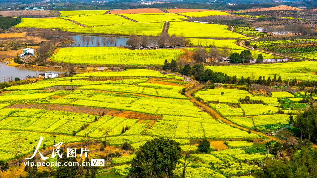 2026年2月21日,游客在江西省樟树市店下镇淦上村的油菜花海中拍照打卡,赏花游玩,感受田园春色。近日,樟树市店下镇淦上村近千亩油菜花陆续盛开,金灿灿的花海连片铺展,吸引了众多游人前来踏春赏花、亲近自然,尽享春日好时光。周亮摄(人民图片网)