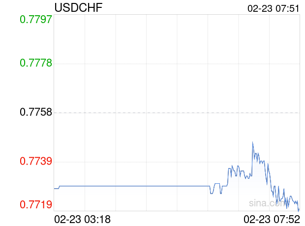新浪外汇消息2026年02月23日,截至07时51分,外汇市场上美元兑瑞士法郎汇率跌破1美元兑换0.7719瑞士法郎。跌幅为-0.5027%