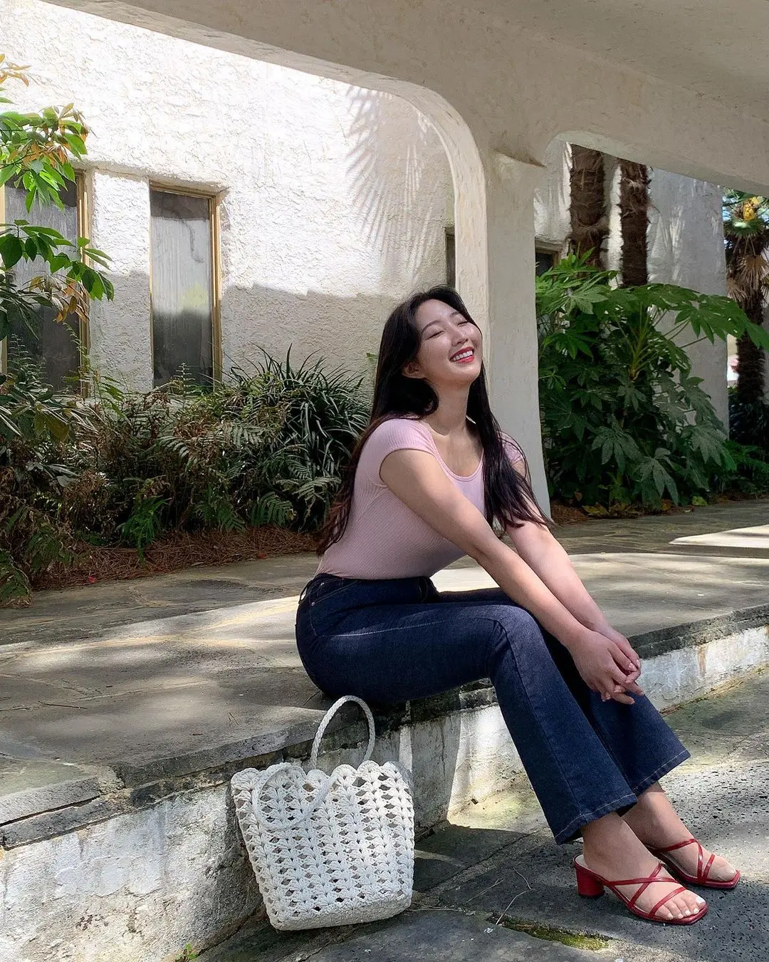 今天街拍图一组,得拿出来单讲。就这张,姑娘往木窗框上一靠,不是那种死靠,是腰