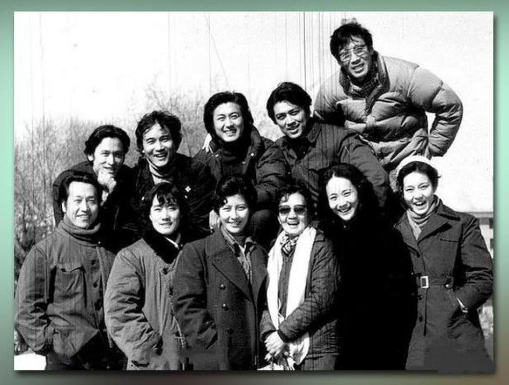 一张老照片:前排我一眼就认出了笑靥如花的潘虹,秀发披肩的顾永菲,戴着墨镜的陈奇,刘海齐眉的张文蓉;后排只认出了中间的佟瑞敏与戴着眼镜的焦晃,目光如炬的你能认出其余五位吗?