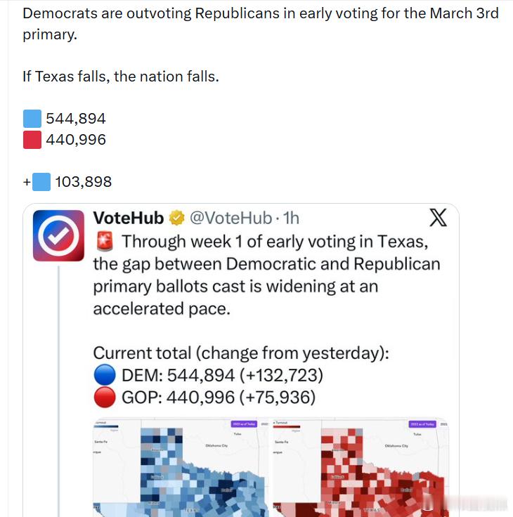 民左党人在3月3日初选的提前投票中,投票人数正在超过共和党。