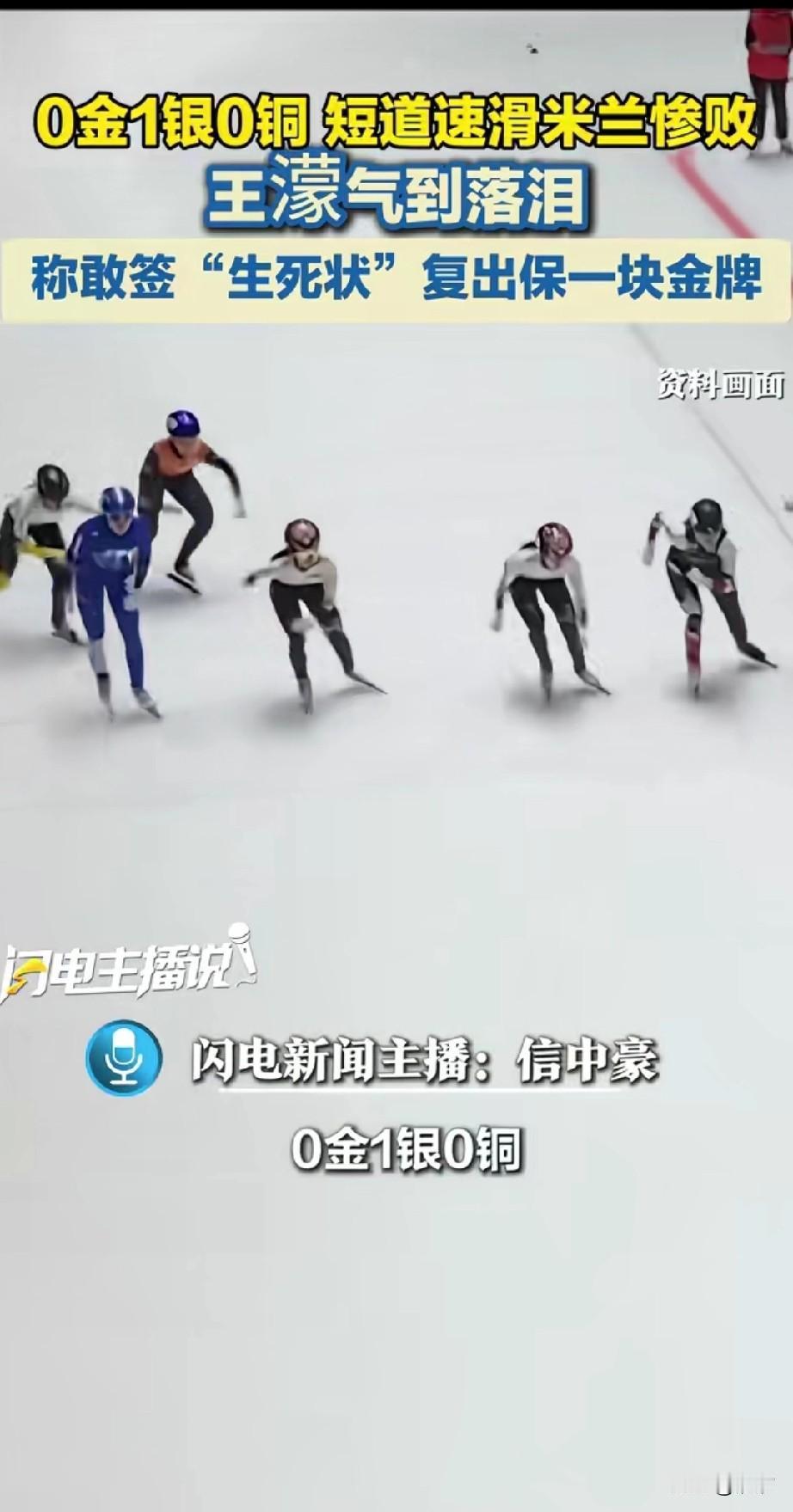 短道速滑米兰惨败, 王濛气到落泪, 称感签生死状复出保一块金牌, 0金1银0铜的结果, 米兰中国短道速滑创28年最差成绩, 作为中国短道速滑的传奇, 王濛在现场观看的比赛, 激动落泪,赛后直言, 自己不是难过, 但是这场比赛太难看了, 花那么多钱把队伍搞成这样, 这战术都是咋安排? 别说米兰冬奥会了, 下届法国奥运会可咋整? 她甚至放出了狠话, 钱给我,我也给你保证整出两块金牌, 队员拿一块,让我拿一块! 这话听着非常刺耳, 但确是她自信的表现, 毕竟人人都希望拿金牌, 有种恨铁不成钢的感觉!