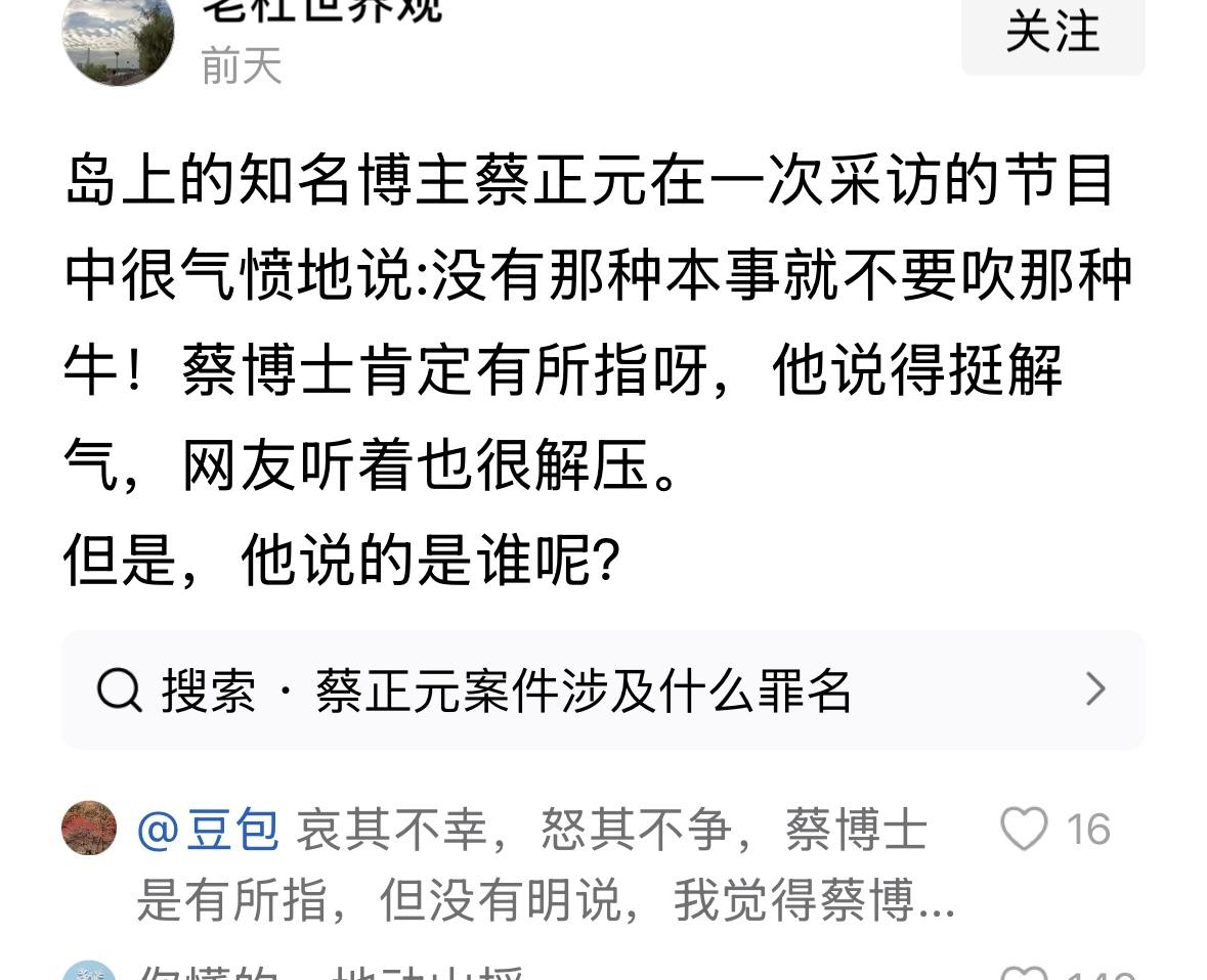 不知道蔡正元说的是谁,他可能说的不是一个人,可能是几个人,也可能是一群人。