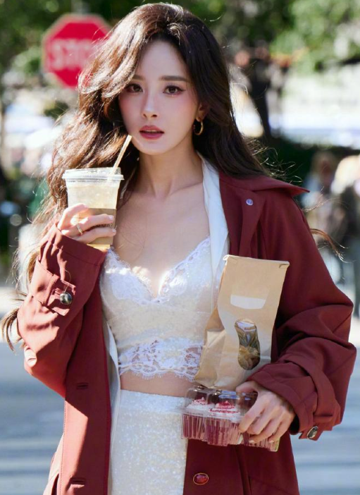 杨幂维密翅膀壁纸,白色蕾丝裙穿搭好身材写真,轻松拿捏优雅姿态