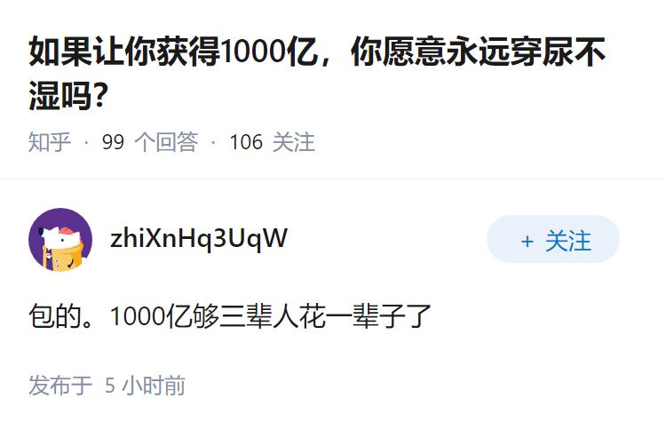 如果让你获得1000亿,你愿意永远穿尿不湿吗?