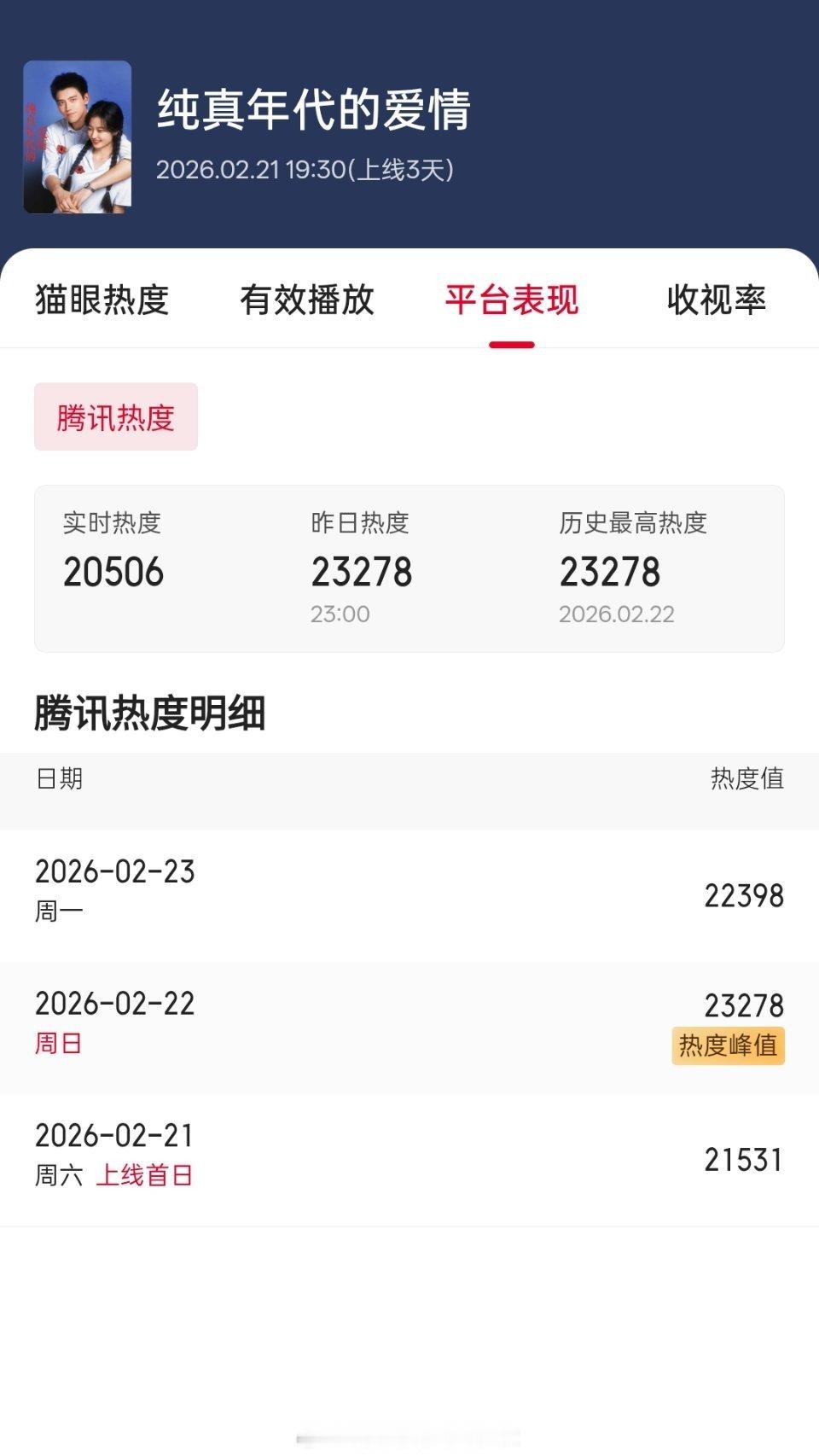 陈飞宇,孙千《纯真年代的爱情》次日表现还不错,酷云收视和站内热度都涨了,目前这剧