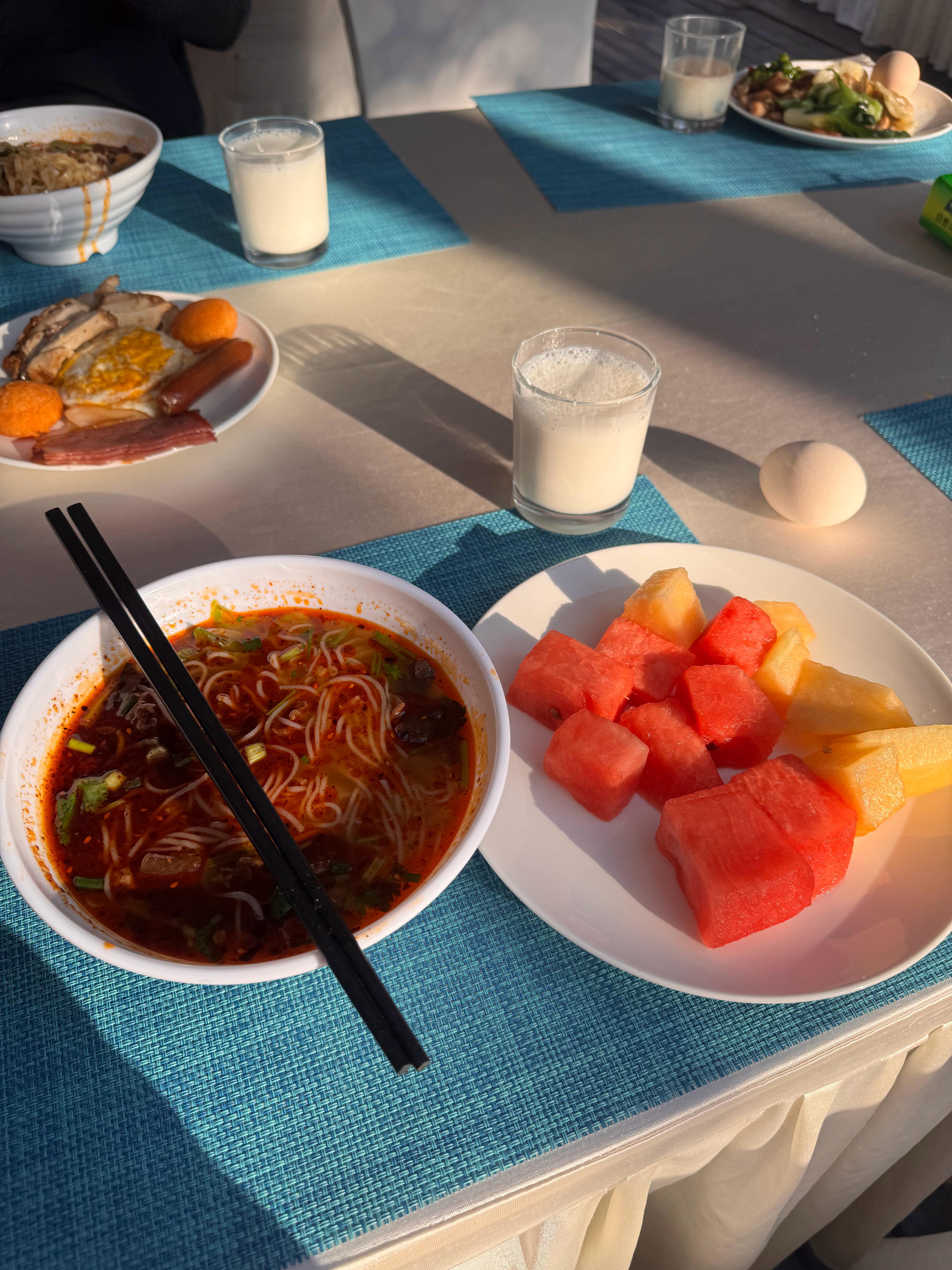 这个酒店早饭可以在外面吃..阳光晒着好舒服….