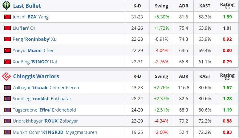 败者组方面,CTG以四连胜与LastBullet会师败者组决赛,两队都在晋级过程当中击败过蒙古战队ChinggisWarriors,合力将这支冠军有力竞争者战队淘汰。