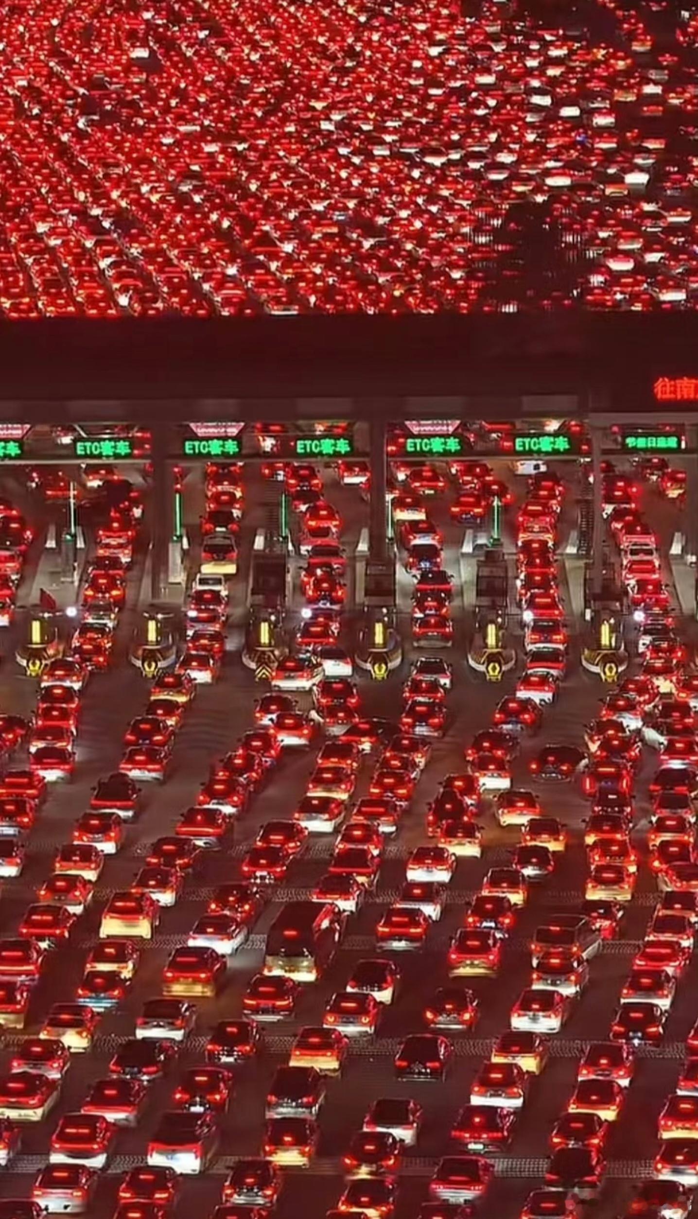 中国最大高速收费站迎返程高峰面对春节返程高峰期,也只能用叹息和震撼来形容车流了