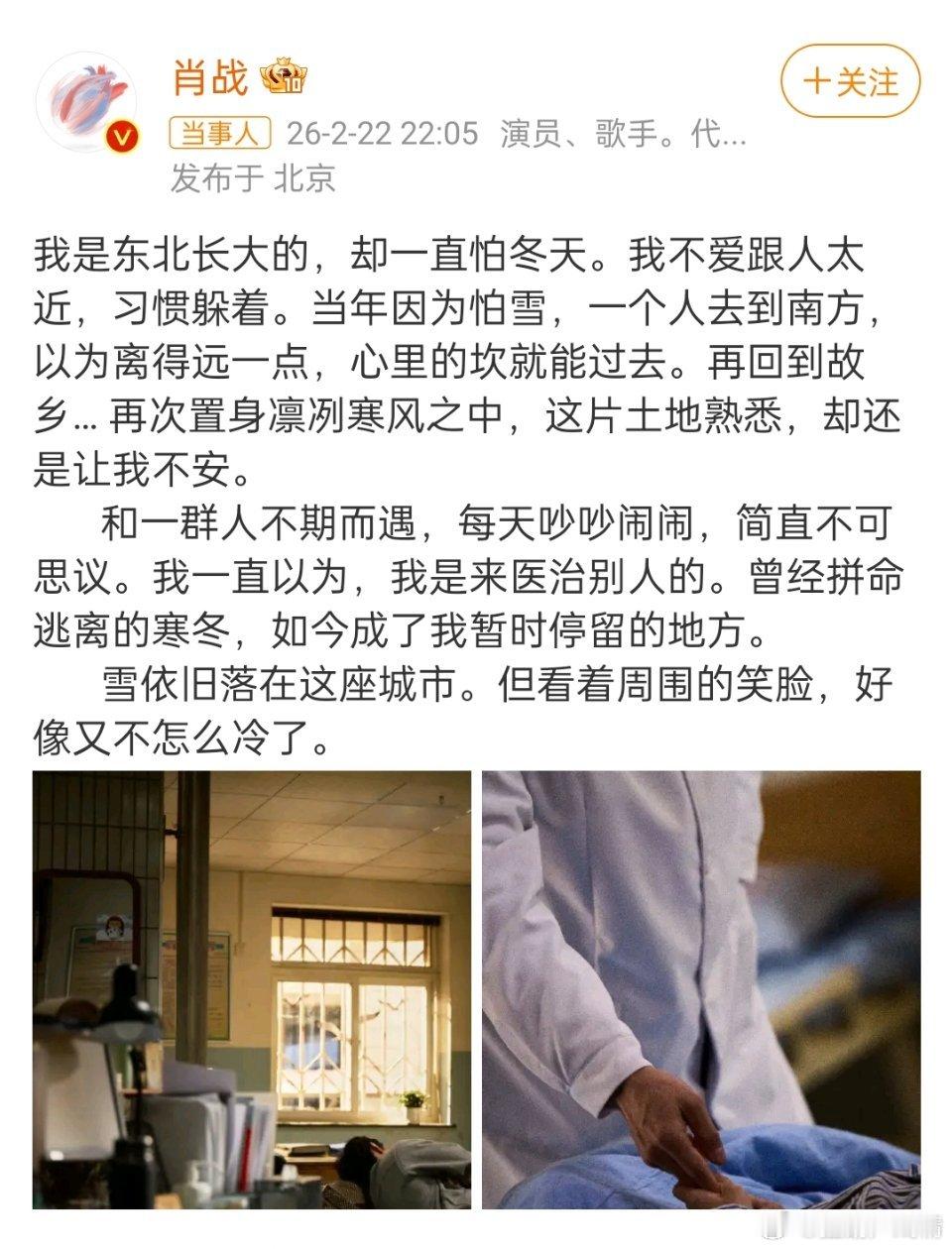 肖战发布杀青小作文肖战这渗进骨子里的浪漫仪式感,刘铮亮医生太帅了,比几年前的顾魏医生还帅,怎么办呢?