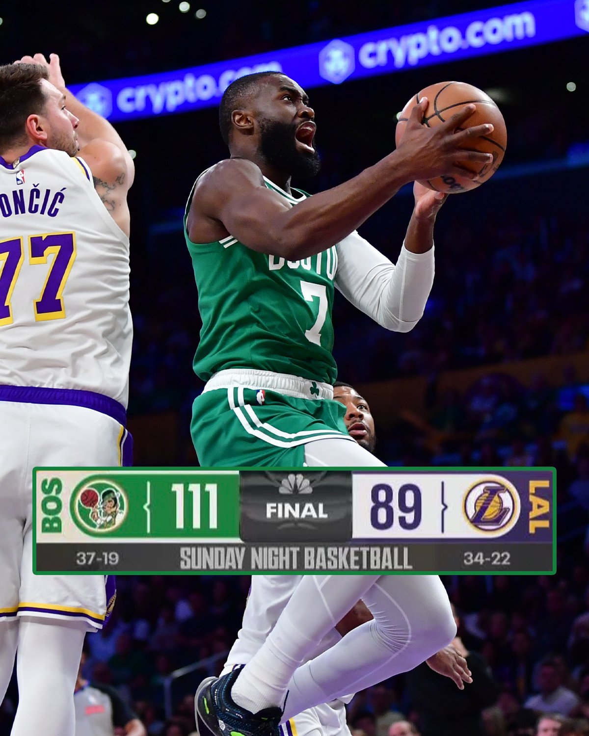 回到比赛. 这场比赛从多个点上只能用丑陋俩字形容在今天的比赛里,首先要说的就是能量感完全被绿凯碾压. 首先第一个要说的就是今天凯尔特人对湖人持球人的全场Blitz, 不轻易的让东契奇或者里夫斯运球过半场. 其次就是进攻,在Franko 的赛前预测的时候他就说过,打绿凯需要湖人找到瞄准镜,但今天湖人角色球员却迎来了哑火. 刚哥7投0中,八村7投2中,这个是想要赢的话必须优化的点. 而凯尔特人的角色球员却做到了各司其职,分工明确的这个点. 普里查德作为板凳骑兵分摊了布朗的球权,并拿出了进攻端万花筒的表现彻底的打死了湖人,而冈萨雷斯和沙伊尔曼这俩在防守端让卢卡今天的进攻非常难受,算是将卢卡成功的限制住了.