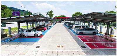 例如,已建成的杭州石德立交桥下地面停车场超级充电站,采用充电堆及液冷超充技术,充电输出功率可根据车机需求与充电模块使用情况智能调配,以减少充电等待时长,有效缓解充电高峰期排队现象。站内还精心打造了集休息室、餐厅、自助零售、AED急救设备、自助洗车等功能于一体的红心驿站,为车主提供全方位的人性化服务。G25长深高速桐庐服务区(南区)也建成了一座光储充一体化智慧充电站,站内新建充电桩108个,600千瓦的超快充桩可以达到1秒1公里的充电速度,基本实现新能源车“即充即走”。