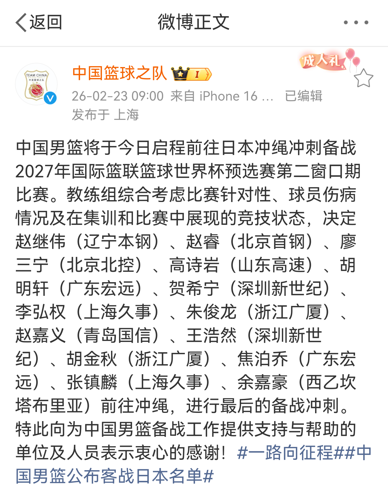 不过其实猜对了12人名单也没啥用,因为按照郭指导的风格一场打个10人轮换就差不多了。所以进了12人名单也不意味着一定能上场打球。