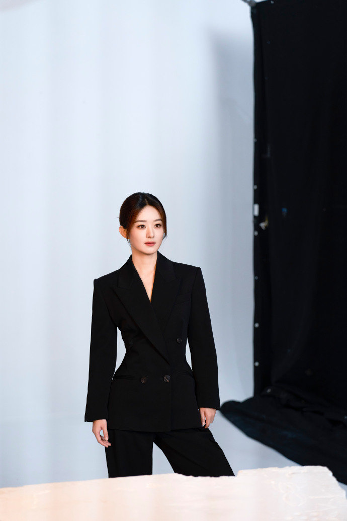 赵丽颖书写专注时刻 赵丽颖露腰黑西装 赵丽颖露腰黑西装,满分干练感的丽颖上线,期