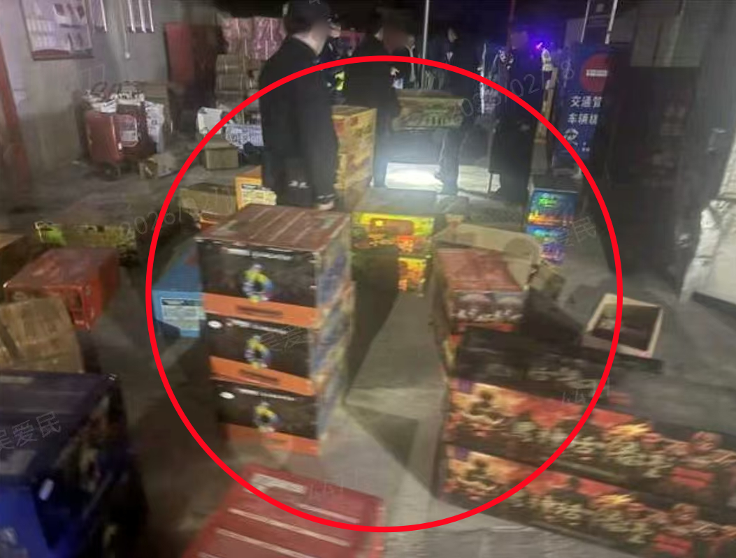 2026年2月18日晚,西昌市公安局西城派出所民警在辖区某路段巡逻时,发现一商户存在违规售卖烟花爆竹迹象。民警立即对该商户及储货场所开展全面检查。经查,商户负责人朱某某在未取得相关许可的情况下,违规储存各类烟花爆竹30箱,存在极大安全隐患,民警当场依法收缴全部违规烟花爆竹。