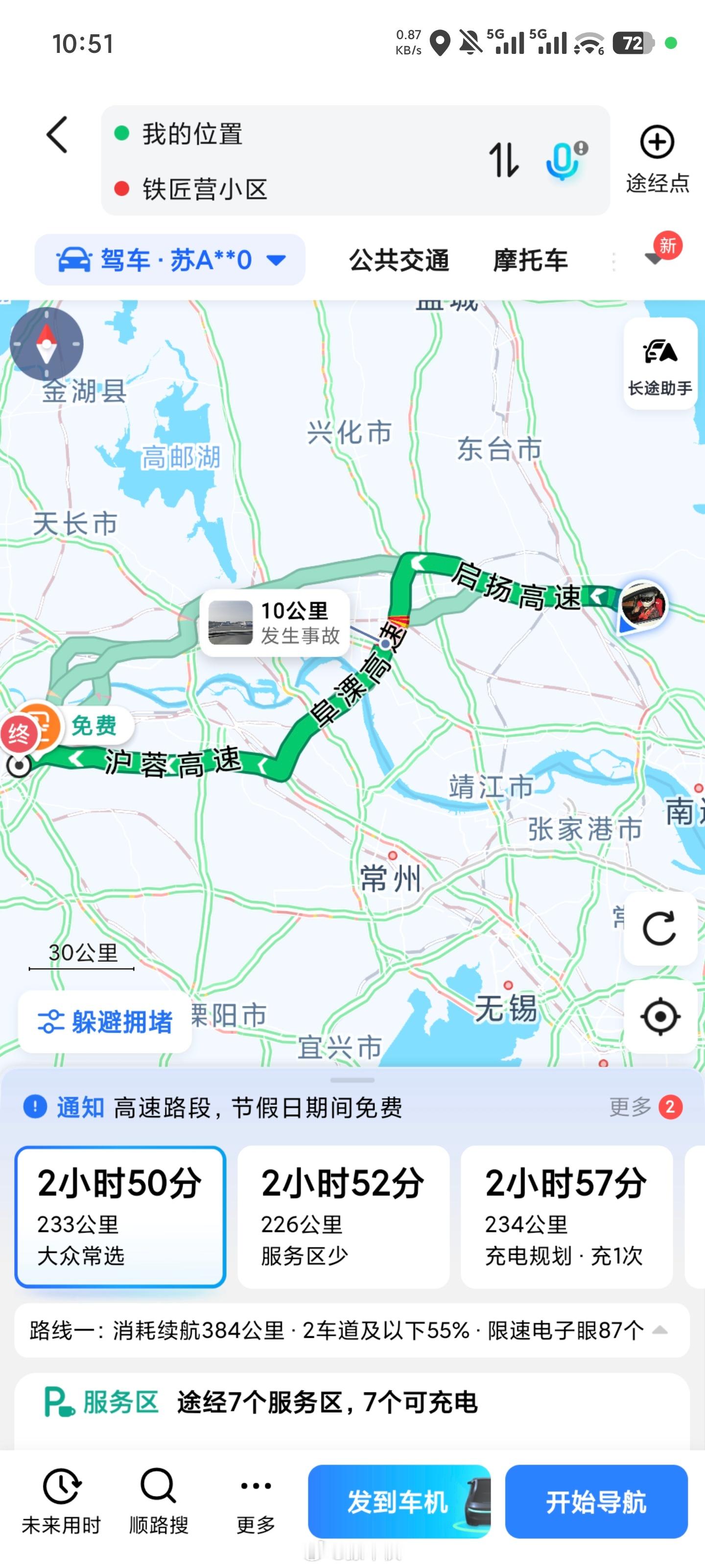 今天下午南通回南京这会路上已经开始堵车了高德预测下午1点出发4点门能到3个小时左右还是能接受的我与汽车的日常