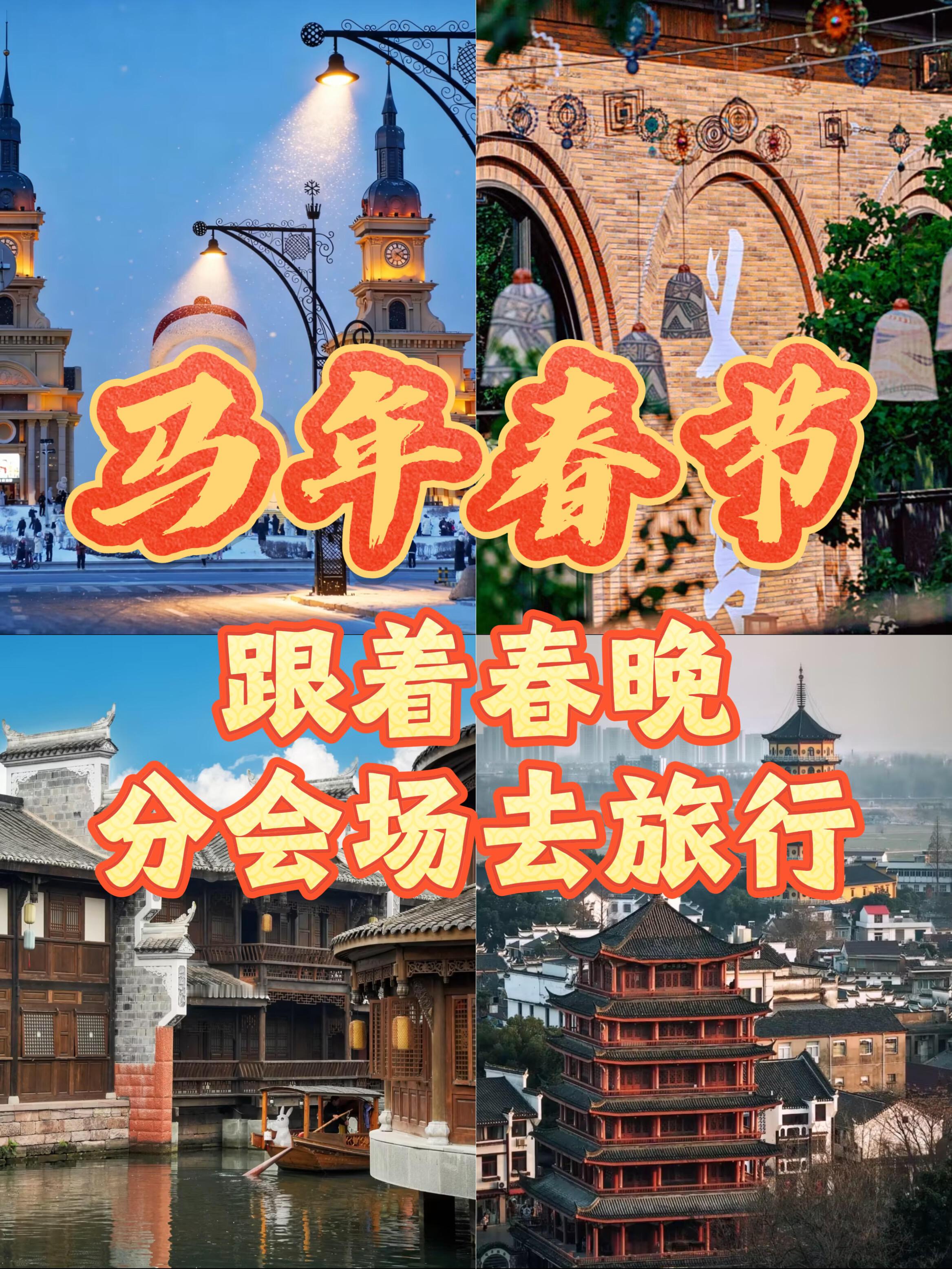 马年春节,跟着春晚分会场去旅行。📍哈尔滨🌟核心特色:冰城冰雪舞台+俄式风情+东北民俗📍义乌🌟核心特色:世界超市万国年味+商贸活力📍宜宾🌟核心特色:长江首城酒韵年味+竹乡风情📍合肥🌟核心特色:科创新城科技年味+传统底蕴马年春节出行人次再创新高今年春节流行科技过年