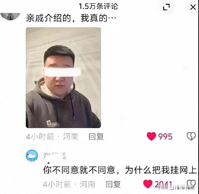 河南,一女子相亲了一个男的,没看上就算了,回家还开始吐槽,又是这里嫌弃、又是那里看不上的。之后,这个女的更加下头,素质也是非常差,给人家未打码的照片挂网上。最为尴尬的是,这个离谱的操作,还被人家给知道了。小伙子无意间刷到了这帖子,先是看到自己的照片被挂,其次女的一直阴阳怪气,再者就是一堆网友开始对自己评头论足。这可给男子气的。 说来还是这个女的素质差,相不上就算了,你不能侵犯人家肖像权,还诋毁人家,由此可见素质是真的差。 大过年的,大概最忙的,就是一群单身男女青年了。 很多人在外面打工奋斗,回老家之后,就会被父母给安排了去相亲。有一位小伙子也是,在父母的撮合下,跟一位远房亲戚介绍的女子相亲。 要知道,相亲本来就是双向的选择,喜欢就确定关系,不喜欢各自回家自此也可以做个朋友。 这或许就是相亲的意义吧。 按照约定的时间,小伙子奔赴到地点,跟女子相见。 小伙子可能是长相比较“有福气”的类型,有些胖,相亲之后,对方女子没有看上他。而小伙子也很大气,当时还把单给买了。 回头,分别之后,相亲的女子就整活儿了,回家就开始搞幺蛾子了。 有一天,小伙子在家里刷短视频,突然看到一个照片,这个照片上的男子,不就是自己吗? 当时小伙子就震惊了,更离谱的是,照片下面还配了文字:“看看的家亲戚给介绍的男的,就长这样,真的一言难尽......” 小伙子看到了,当时就生气了,直接就在底下回复了:“你相不上我就算了啊,你为什么要把我的照片放到网上啊,这是想要大家都来嘲笑我吗?” 没有想到,男子的回复,引发很多网友的关注,大家都在询问:“这个男的真的是你吗?我们竟然刷到了本人?” 小伙子非常无奈的说:“是的,这个人就是我,但是这样也太不礼貌了吧!” 要知道,随意把人家的无码照片放到网上,不仅暴露对方的人品问题,这还是违法的。小伙子要是较真的话,可以直接跟这个女子走一走法律的途径了。 这件事的发生,也确实令人很生气。 可以想想这个女子的做法,的确很过分。两个人也都是亲戚介绍的,都是为了处对象来的,双向选择,更多的应该是互相尊重。 看不上人家,很正常,那就下一个好了,但是你为什么要人身攻击人家呢? 很多网友表示:“活该这个女的没人要,还一直相亲呢,因为自己人品也太烂了!” 礼貌拒绝、不再联系、各自安好,这不就行了吗?但是为什么要把自己的优越感,建立在别人的难堪之上呢? 时不时把人家的照片挂网上,让网友们评论:哎呀,跟你不般配;或者就是评头论足,贬低男子、抬高女子,这个就真的太下头了! 小伙子接下来的正确方式建议:删帖、道歉、甚至还可以索赔。 本案释法: 未经他人同意,擅自公开他人的照片,不打码直接挂在网上,这位女子的行为是否触犯了法律呢? 是的,女子的行为已经涉嫌违法,因为她没有经过他人的同意,擅自将他人的照片不打码直接挂在网上,已经触犯了法律,侵犯了他人的合法权益。 根据《民典法》第1019条规定,未经肖像权人同意,不得制作、使用、公开其肖像,不管是否以盈利为目的,均构成违法。 即便行为人主观上只是想要“泄愤”或者是“调侃”,但是如果没有经过他人识别,却将他人的外部形象公开,此举就构成侵权。 没有打码就公开照片,可能同时侵犯了肖像权和名誉权,如果还带文字评论,女子的行为后果是:需要做出民事赔偿、道歉、可能会承担行政拘留后果,更严重的还会涉嫌刑事犯罪。 本案中的小伙子看到这个帖子之后,需要第一时间跟女方后台私信,要求对方立刻停止侵害、删除内容、公开道歉,如果想要继续追究,可以要求女子做出精神损害赔偿,让她承担相应的法律责任。 相亲不成、那就各自安好、分道扬镳再寻他缘。公开挂人家照片,表现这个女的,既失德、又违法、还暴露人品,真的很令人讨厌! 大家说是不是?