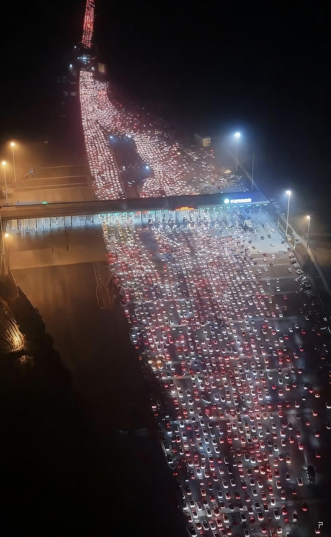 就如同塞伦盖蒂大草原上角马大迁徙一样,回家过年的游子们,大年初六又开始返程了。 这里是世界最大最壮观的吴庄收费站,双向36车道(12进24出),即便是如此多的车道,依旧堵得水泄不通,绵延数里。