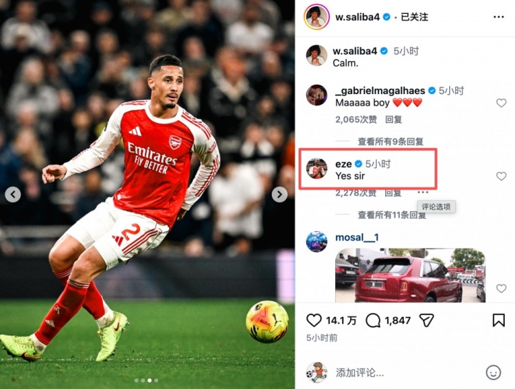 4-1笑傲德比!萨利巴社媒:保持冷静!埃泽回复:Yes sir