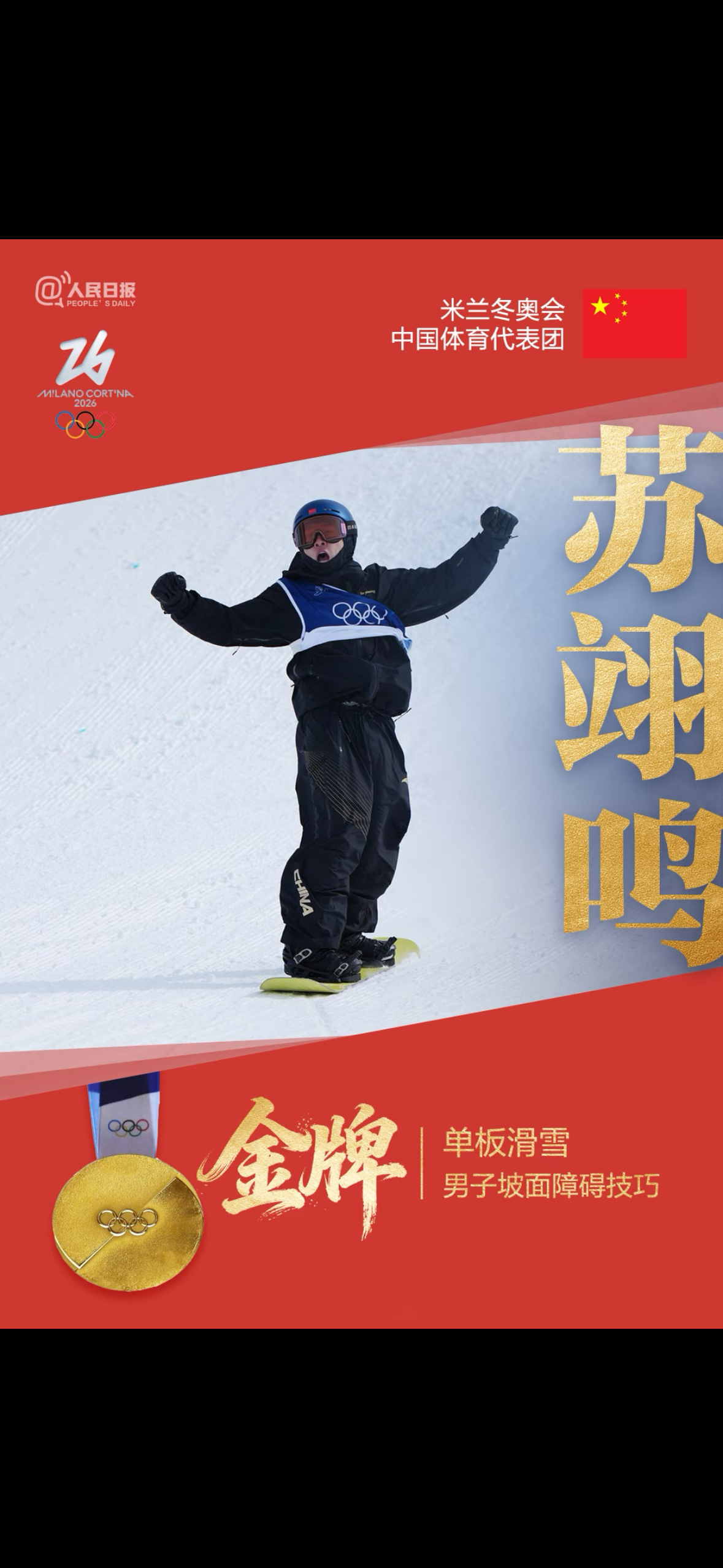 中国队5金4银6铜收官中国队创造境外参加冬奥最佳战绩 米兰冬奥会所有项目落下帷幕,中国冬奥代表团以5金4银6铜,总计15枚奖牌成绩收官,位列奖牌榜第12位,追平了2022年北京冬奥会奖牌总数纪录,也创造了中国代表团境外参赛冬奥会的历史最佳战绩。🥇1.苏翊鸣:单板滑雪坡面障碍技巧夺冠,生日当天为中国队夺下首金2.徐梦桃:5届传奇卫冕自由式滑雪女子空中技巧冠军,成为历史第一人3.宁忠岩:破奥运记录夺得速度滑冰1500米冠军,成为亚洲第一人4.王心迪:夺得自由式滑雪男子空中技巧冠军,与徐梦桃一起成就“冠军夫妇”5.谷爱凌:强势卫冕自由式滑雪U型场地技巧冠军,成就自由式滑雪奥运奖牌数第一人