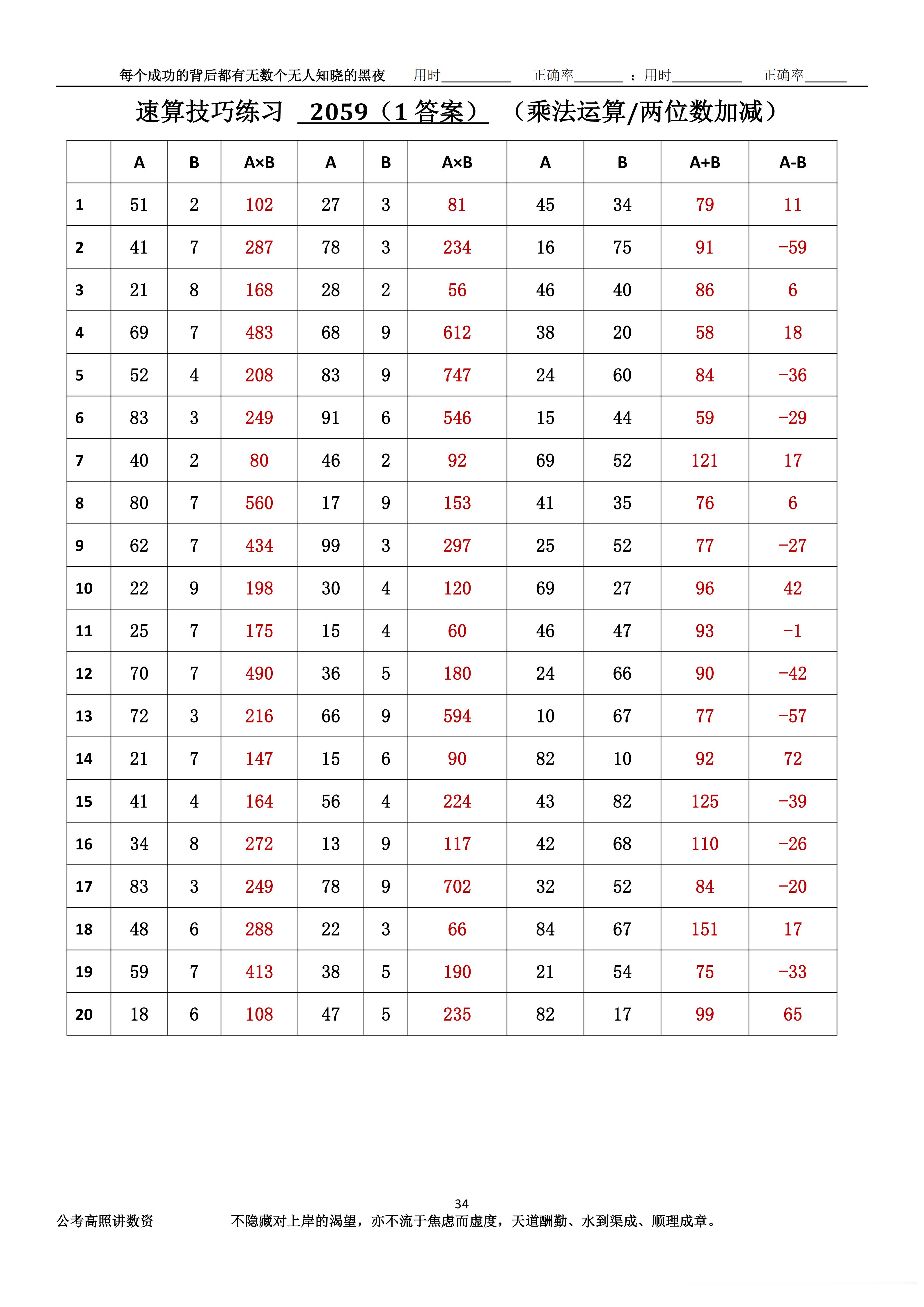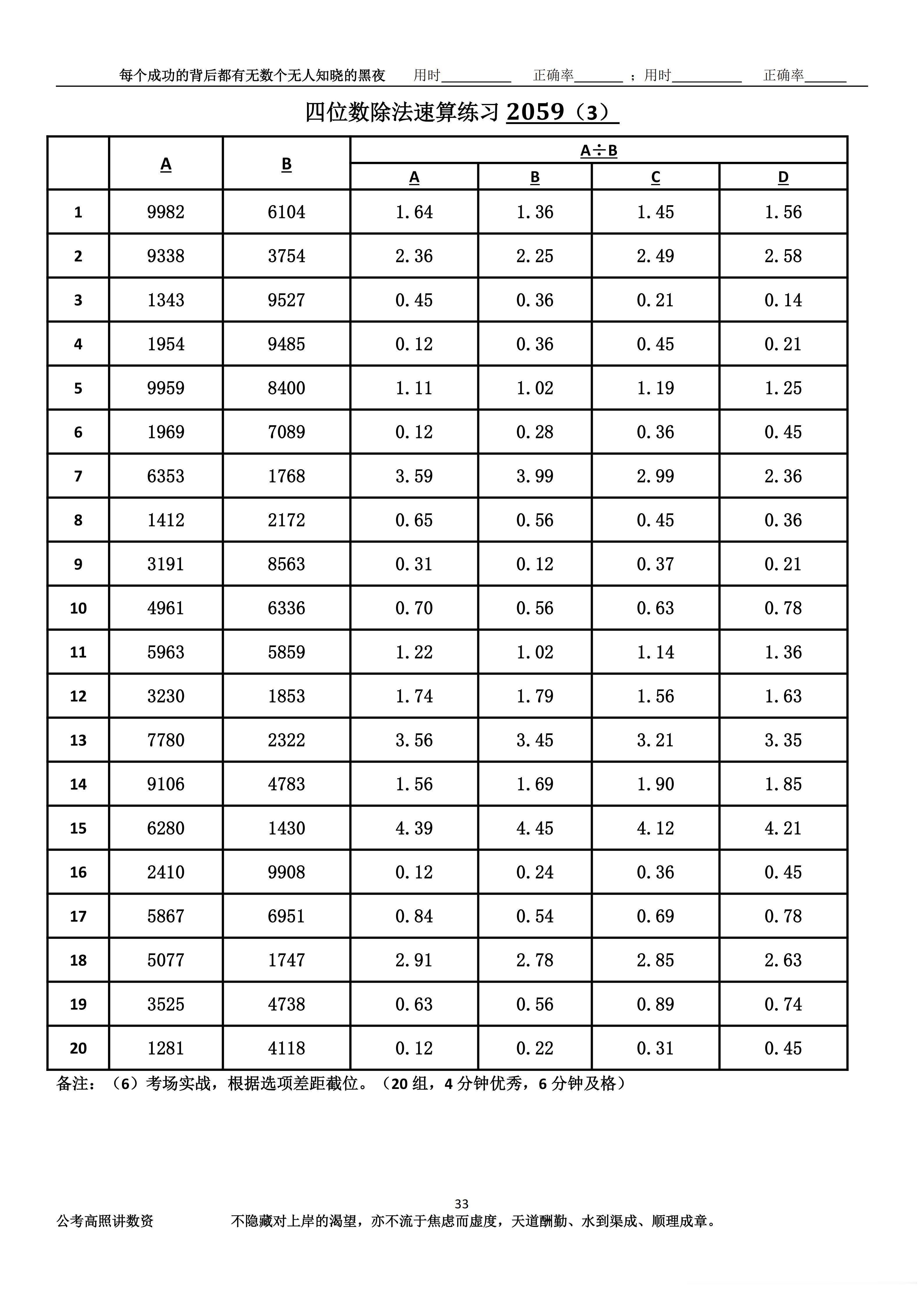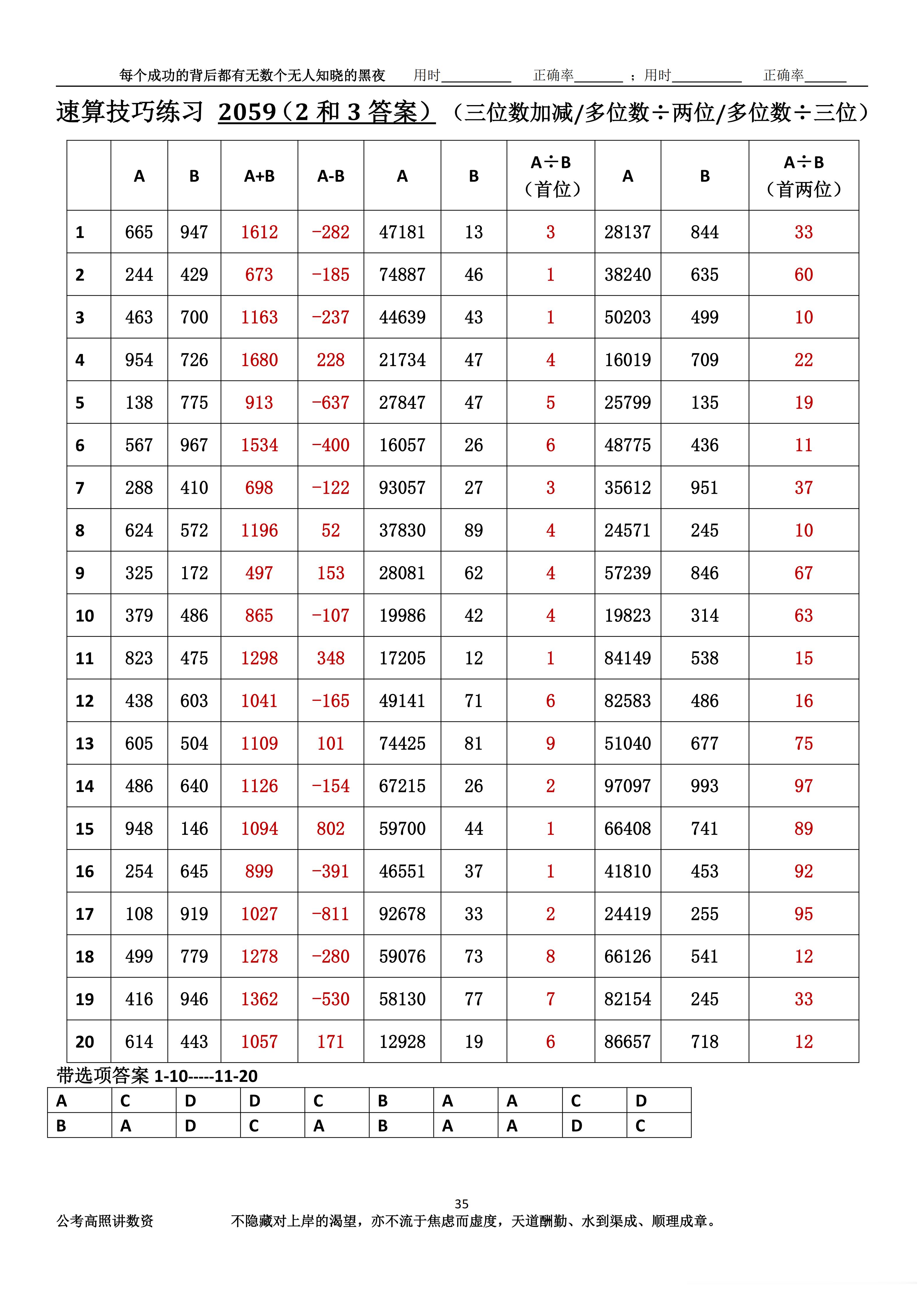跟着高照练速算决战公考 速算练习2059